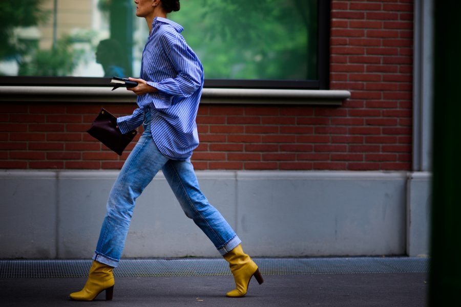 a fabulous pair of banana-yellow boots from Céline with a fit so narrow they near give me a cardiac arrest each time I try and remove them.