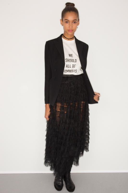En mettant en avant ses convictions féministes via des tee-shirts à messages, la créatrice inscrit son défilé dans l'air du temps, à défaut de le rendre inoubliable. Il est vrai que si les silhouettes fonctionnent parfaitement, les vêtements du show manquent cruellement de caractère. Un état de fait qui n'empêche cependant pas la critique de saluer unanimement ce premier opus. On se dit alors que l'on a sûrement tort d'être déçue par celle qui promettait de sublimer la fusion entre féminisme et féminité, et qu'il faut lui laisser sa chance.
