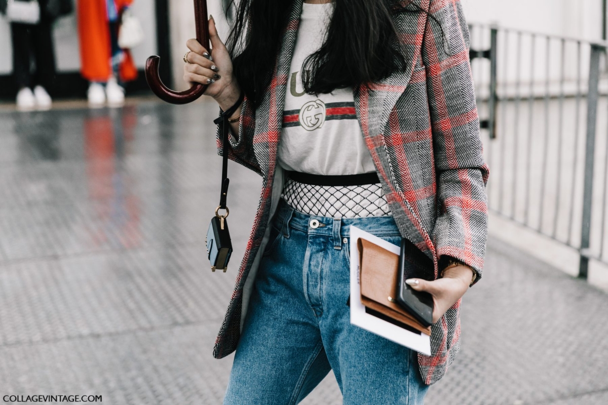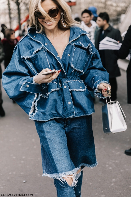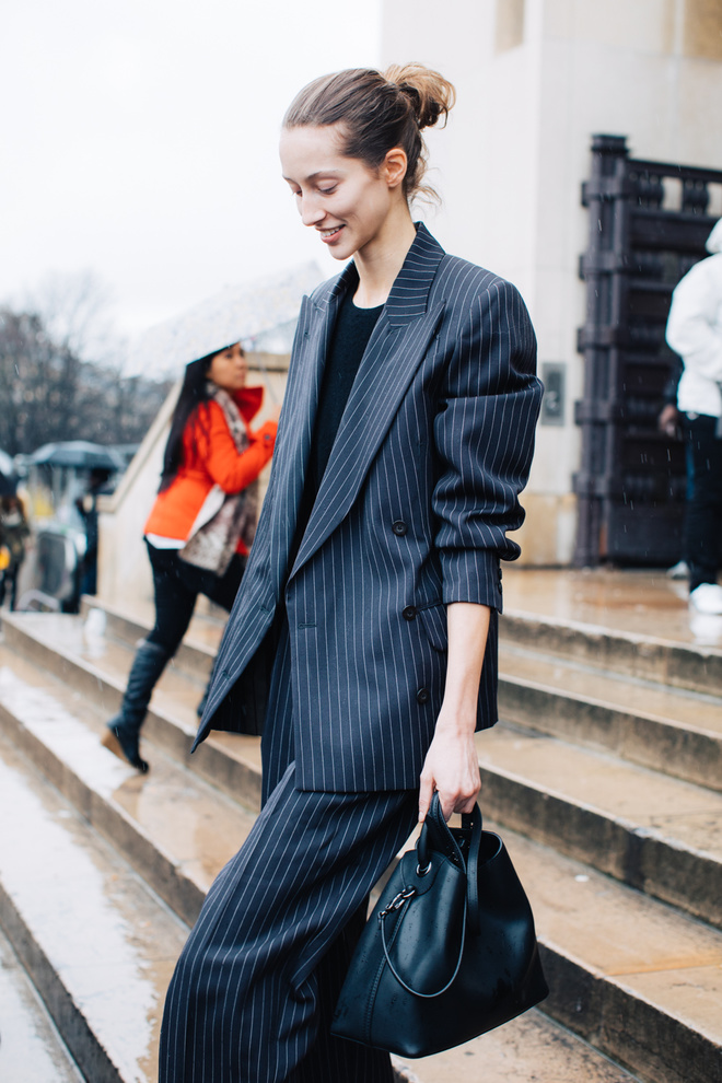 Les bottines chaussettes se révèlent très pratiques pour contrebalancer les volumes allant du légèrement large à l'oversize (voir ici et là). Le sac Puzzle de chez Loewe remporte la médaille du "must have 2017" (voir ici, ici, ici, ici, ici et là). Vestes, chemises et pull-overs aiment à se porter en décolleté sur les épaules. L'humeur du moment est au pantalon de costume XXL (voir ici, ici, ici, ici et là). À réserver aux plus longilignes... Veste en jean et denim se portent en duo (voir ici, ici et là), et tant pis si l'ensemble génère un effet nineties un brin too much... Contrairement à Nicki Minaj, Taylor Tomasi a eu la décence de ne pas miser sur un "nipple gate" pour tenter de booster son image. L'excès de rayures verticales peut amener à confondre "look fashion" et "dégaine post grasse matinée" (voir ici). Les bottes et cuissardes se portent sur le jean (voir ici et là). La mode est décidément un éternel recommencement…