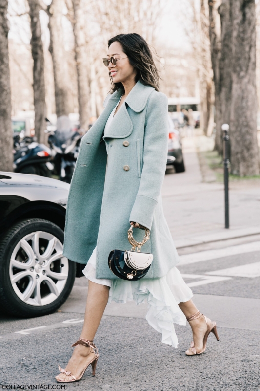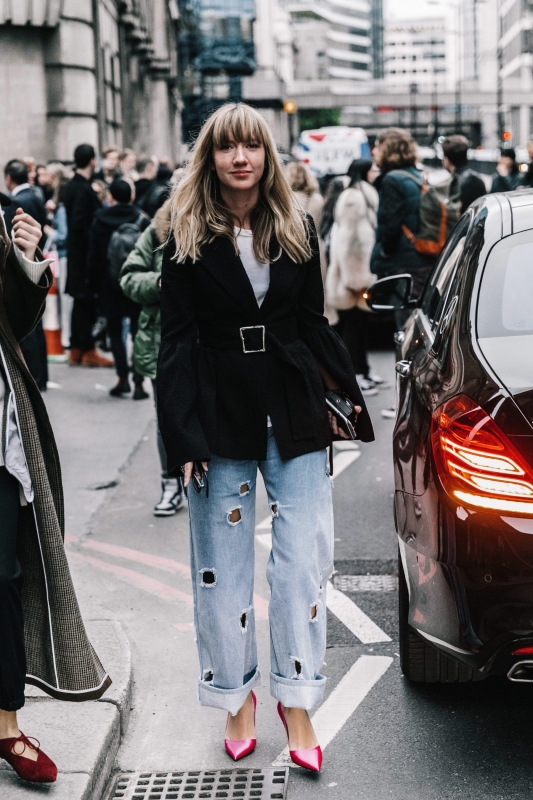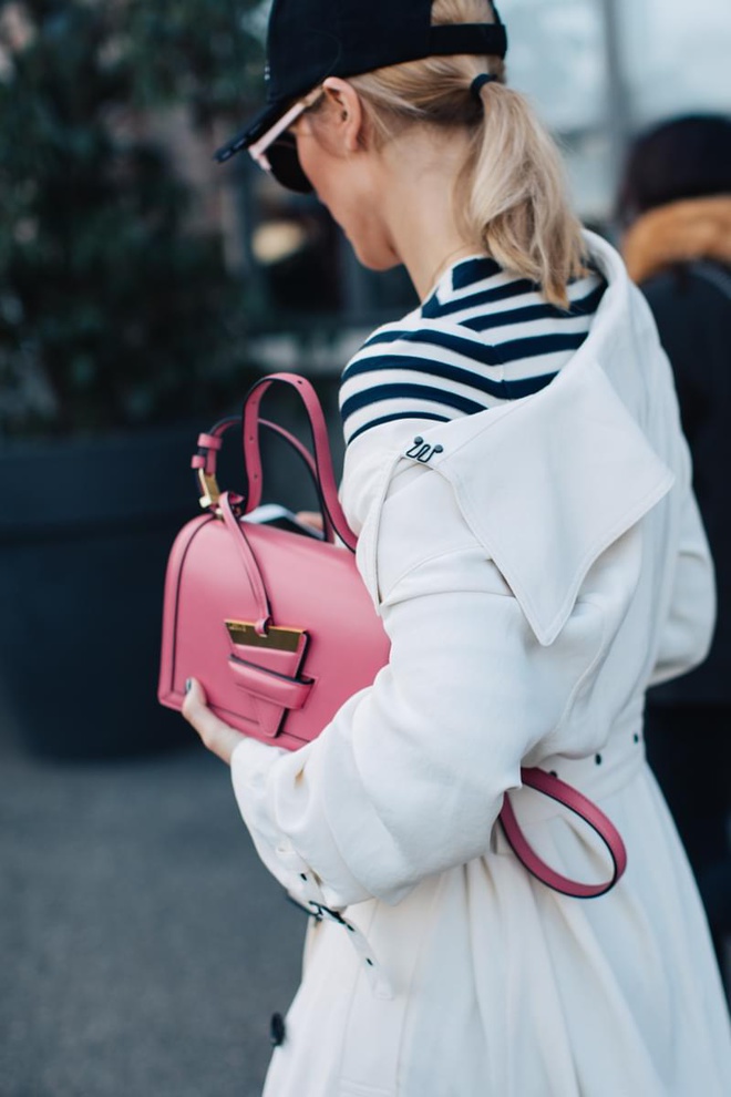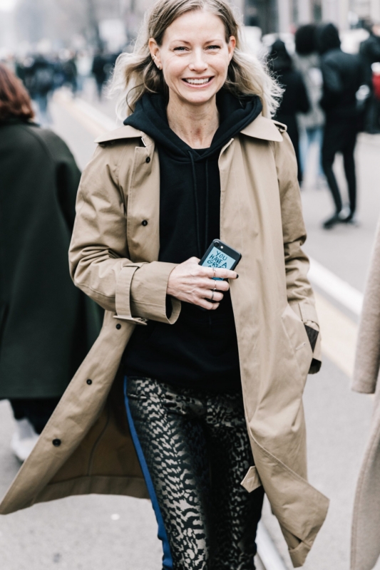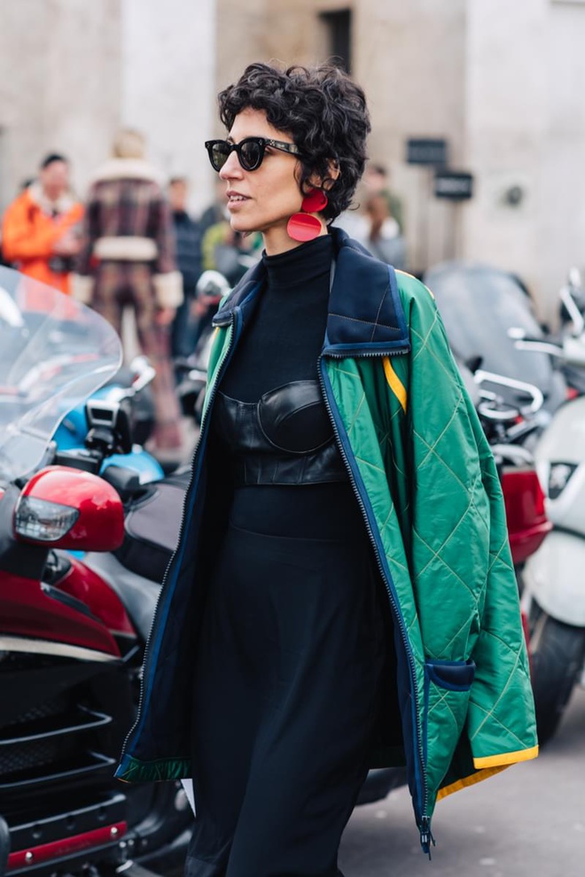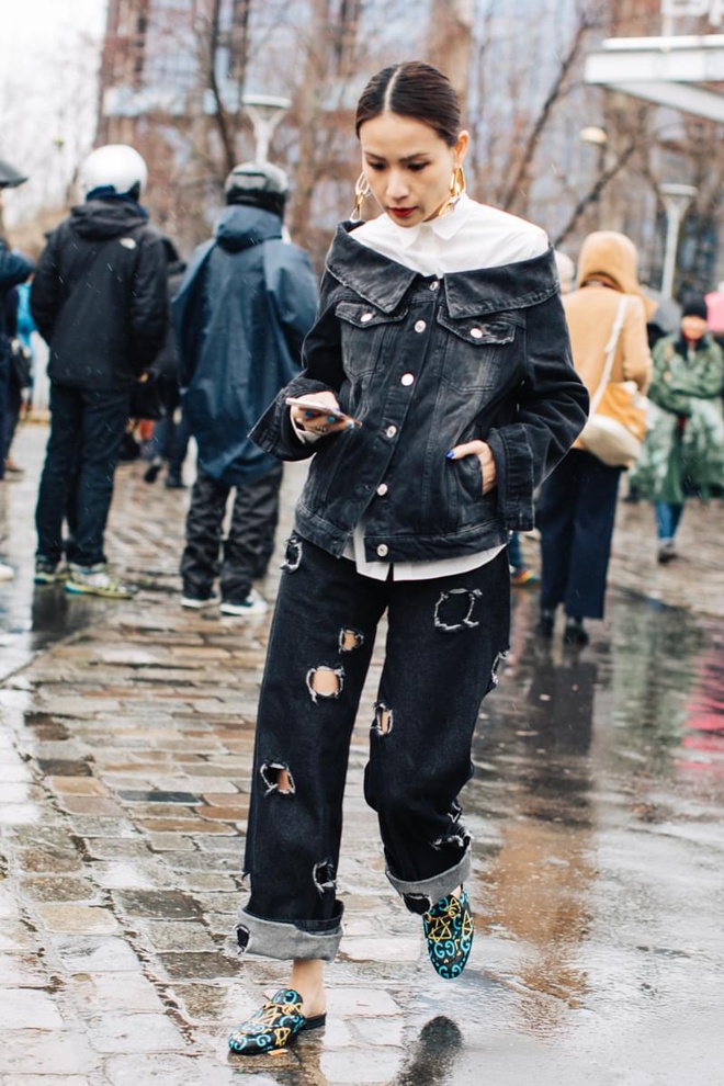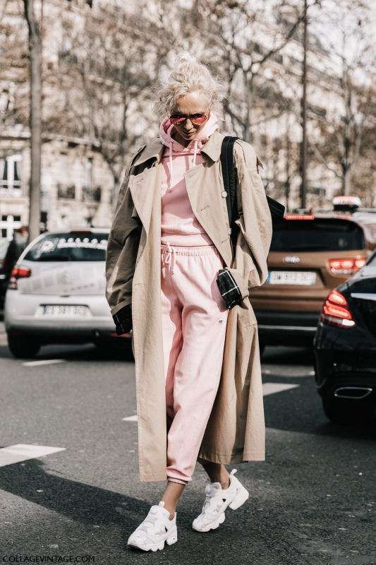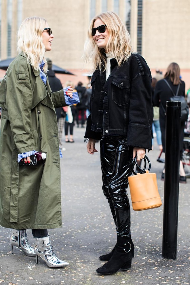 Un vent de liberté souffle sur le dressing des street-styleuses, qui n'hésitent plus à tester associations incongrues, coupes peu communes et superpositions fantasques (voir ici, ici, ici, ici et là). Si le mix trench/hoodie reste une valeur sûre, on préfère lorsque ce dernier s'associe à des manteaux plus audacieux. Déclinée en mode monochrome, la superposition doudoune/perfecto ne manque pas de fashion appeal (voir ici). Les longues robes fleuries tentent de déjouer leur côté fleur bleue à coups de sous-pull, tee-shirt à messages, perfecto, boots massives et autres artifices roots, le tout pour un résultat assez aléatoire… Ne sachant plus à quelle tendance se vouer, le jean expérimente à tout va (voir ici, ici, ici et là). Moins clivant que l'orange, le rose risque fort de gagner le duel pour le titre de "couleur du printemps" qui l'oppose à la teinte halloweenesque (voir ici, ici, ici et là). Les chemises dépassent plus ou moins subtilement de petits pulls courts (voir ici et là). En matière de denim, le maxi ourlet fait de la concurrence aux bords asymétriques (voir ici et là). Les mini bustiers misent sur la néo-pudeur en ne se portant plus à même la peau (voir ici et là).