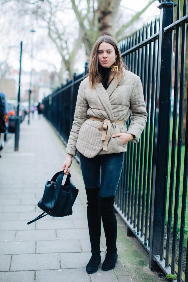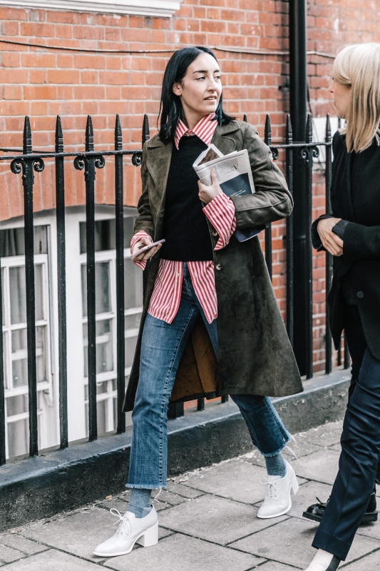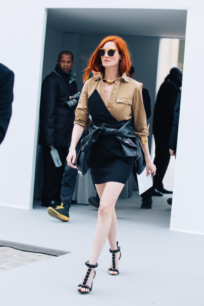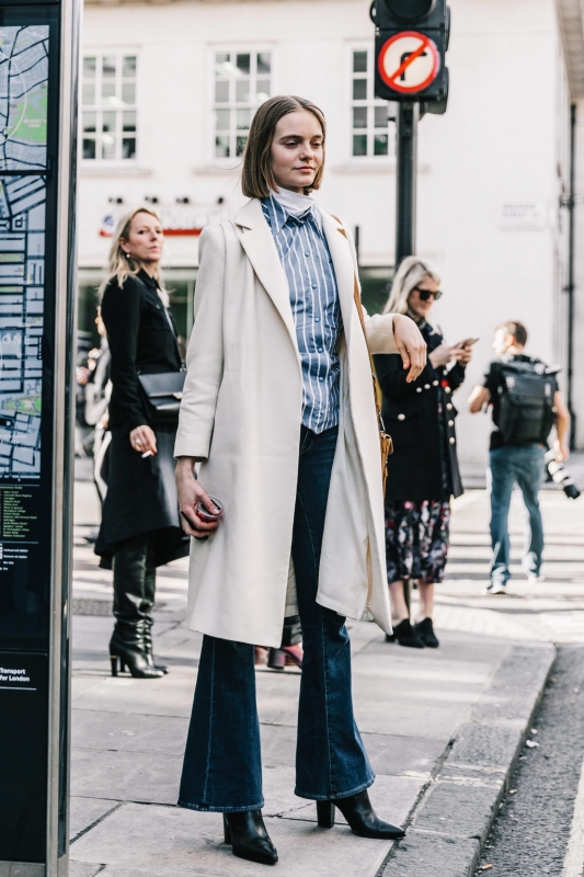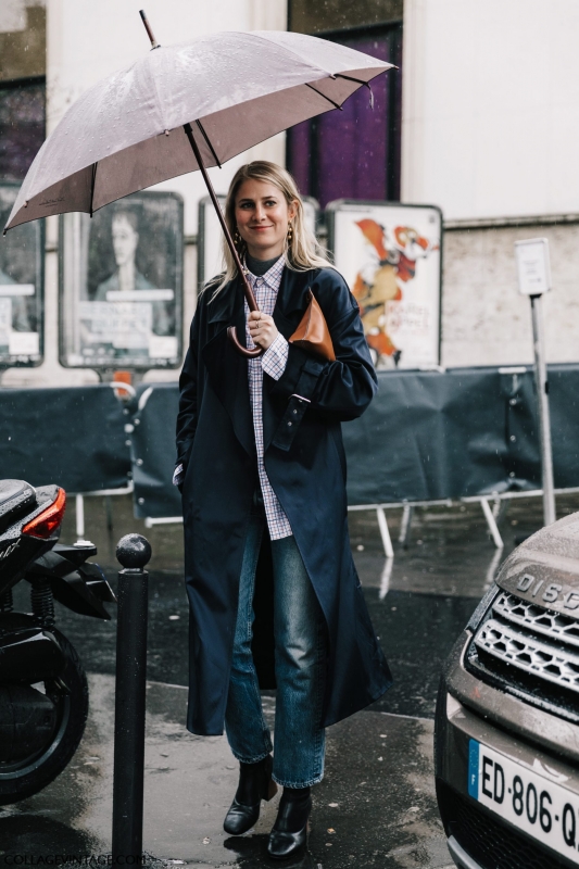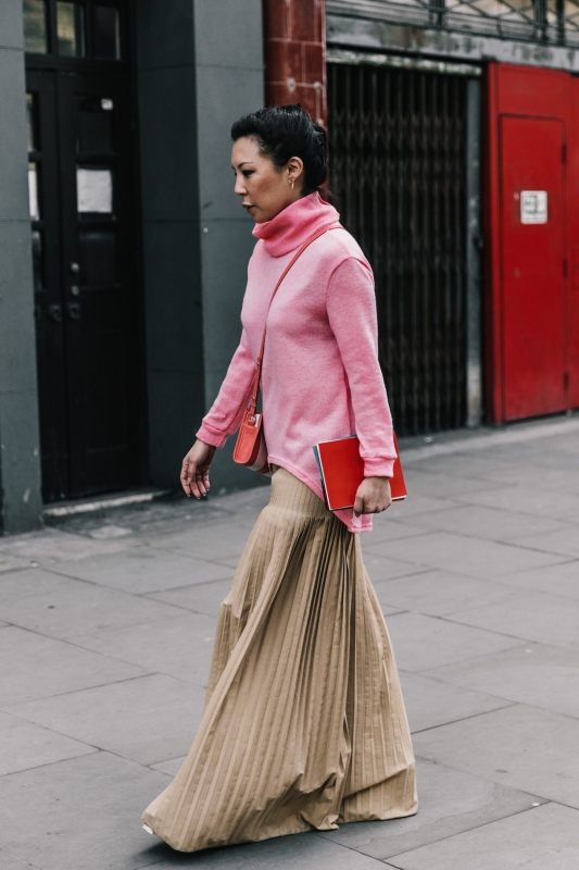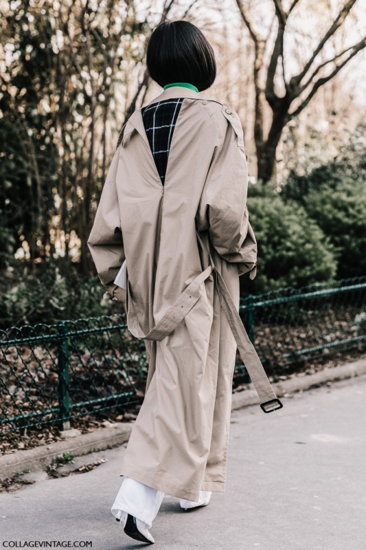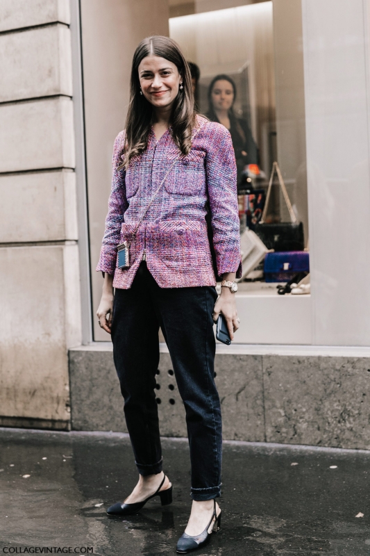 Un vent de liberté souffle sur le dressing des street-styleuses, qui n'hésitent plus à tester associations incongrues, coupes peu communes et superpositions fantasques (voir ici, ici, ici, ici et là). Si le mix trench/hoodie reste une valeur sûre, on préfère lorsque ce dernier s'associe à des manteaux plus audacieux. Déclinée en mode monochrome, la superposition doudoune/perfecto ne manque pas de fashion appeal (voir ici). Les longues robes fleuries tentent de déjouer leur côté fleur bleue à coups de sous-pull, tee-shirt à messages, perfecto, boots massives et autres artifices roots, le tout pour un résultat assez aléatoire… Ne sachant plus à quelle tendance se vouer, le jean expérimente à tout va (voir ici, ici, ici et là). Moins clivant que l'orange, le rose risque fort de gagner le duel pour le titre de "couleur du printemps" qui l'oppose à la teinte halloweenesque (voir ici, ici, ici et là). Les chemises dépassent plus ou moins subtilement de petits pulls courts (voir ici et là). En matière de denim, le maxi ourlet fait de la concurrence aux bords asymétriques (voir ici et là). Les mini bustiers misent sur la néo-pudeur en ne se portant plus à même la peau (voir ici et là).