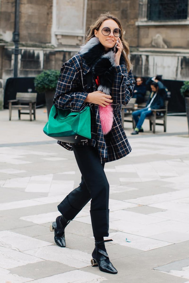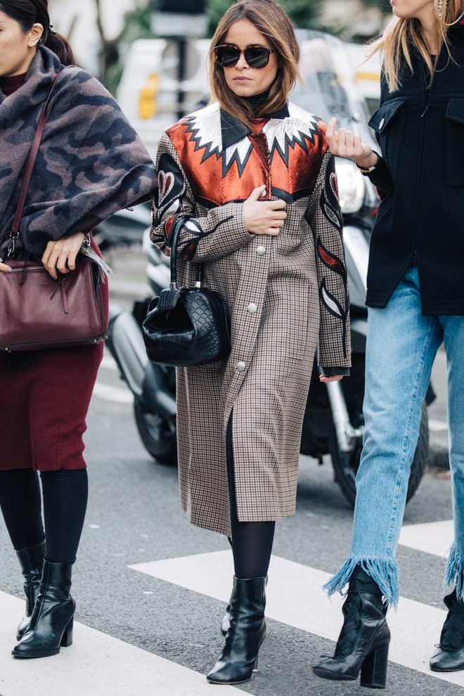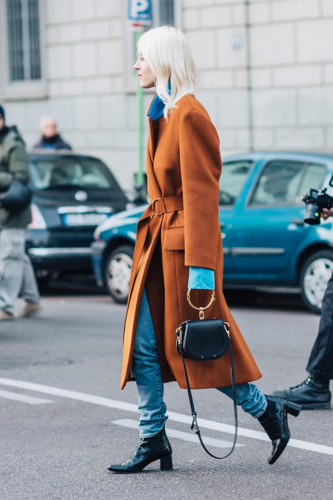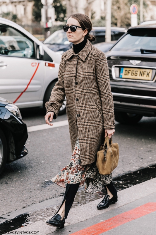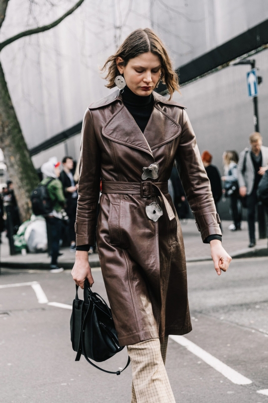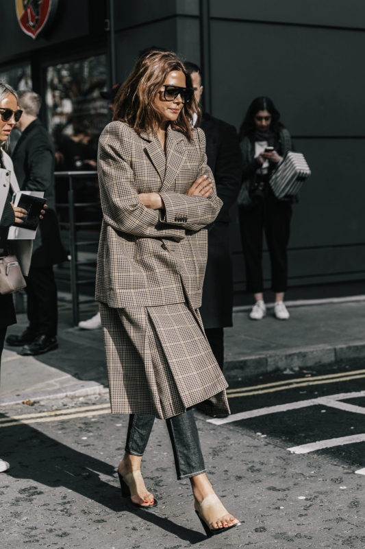 Certaines créatures croisées aux abords des défilés ont de quoi laisser songeur (voir ici). Les variations autour de la teinte marron s'acclimatent fort bien au noir réglisse (voir ici, ici, ici et là). Travaillés dans les tonalités marron ou grises, les manteaux Prince de Galles ou à petits carreaux se déclinent dans tous les styles et donnent furieusement envie d'en finir avec le sempiternel pardessus camel (voir ici, ici, ici et là). Le pantalon en vinyle se substitue au traditionnel slim en cuir (voir ici et là). Les souliers blancs prennent la place des mules Gucci dans le coeur des trend-setteuses (voir ici, ici, ici, ici et là). Les combo de teintes caramel/marron gagnent en sophistication en quittant le registre "gentleman farmer" (voir ici). Le trench reste le grand favori du moment et ne boude pas son plaisir en questionnant inlassablement sa nature de pièce classique (voir ici et là). Les chemises se portent boutonnées haut et réchauffées d'un sous-pull (voir ici et là). Une association à consommer avec modération, celle-ci ayant tôt fait d'alourdir le haut de la silhouette.