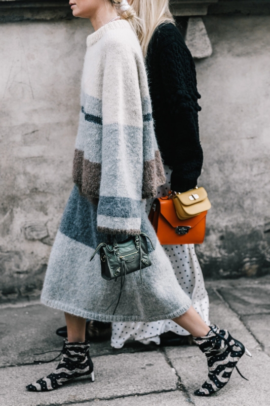 Les collants résille s'essaient à des dress codes expérimentaux (voir ici). Le paquet de cigarettes troque son banal papier cartonné contre un métal reluisant et se mue en minaudière (voir ici). Aperçu au sein de bon nombre de collections automne/hiver 2017-2018, le velours côtelé s'aventure déjà sur les pavés (voir ici et là). La tendance "jogging en ville" fait fi de toute subtilité (voir ici et là). Le pantalon devient une réelle alternative aux collants (voir ici, ici et là). Le cabas en osier tressé se rêve en "it" bag (voir ici). En matière de vestes et manteaux, l'oversize a toujours la cote (voir ici). De quoi permettre aux modeuses de savourer sans arrière-pensées les petits fours offerts à la fin des défilés... Cette saison, l'orange gagne ses galons de "it" couleur et permet au commun des mortelles d'envisager sa portabilité (voir ici, ici et là). Les sacs Chloé cannibalisent le paysage visuel (voir ici, ici, ici, ici, ici et là).