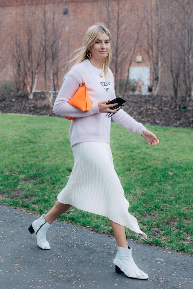 Entre denim nineties, lâcher-prise stylistique, souliers immaculés, longues robes fleuries twistées et fièvre orangée, petit tour d'horizon du paysage street style du moment…