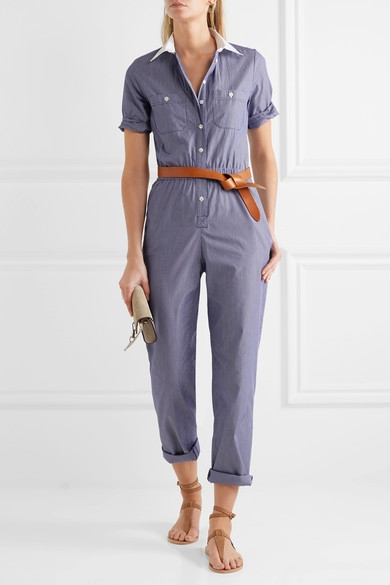 Cette combi chemise + ces sandales roses + un foulard blanc noué en bandeau dans les cheveux. Cette combi fleurie + ces sandales + + cette pochette. Cette combi en jean à demi ouverte sur un caraco blanc + ces baskets + ces boucles d'oreilles. Cette combi garagiste (hors de prix mais sublime, intemporelle et portable en toutes occasions) portée les manches roulottées et le zip légèrement descendu + ces mules + ces boucles d'oreilles.