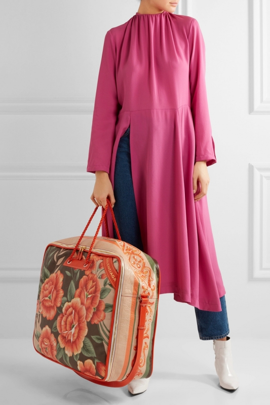 Pile dans l'esprit ready-made cher à Demna Gvasalia, le sac Blanket mime à la perfection les housses de rangement pour couettes et autres édredons : des anses en cordelettes aux oeillets retenant ces dernières en passant par les fermetures éclair latérales et le volume XL, tout y est. Seules différences : la matière du sac et le logo de la griffe, qui permettent de transformer ce sac à l'origine 100% utilitaire en "it" bag à 2900 euros.