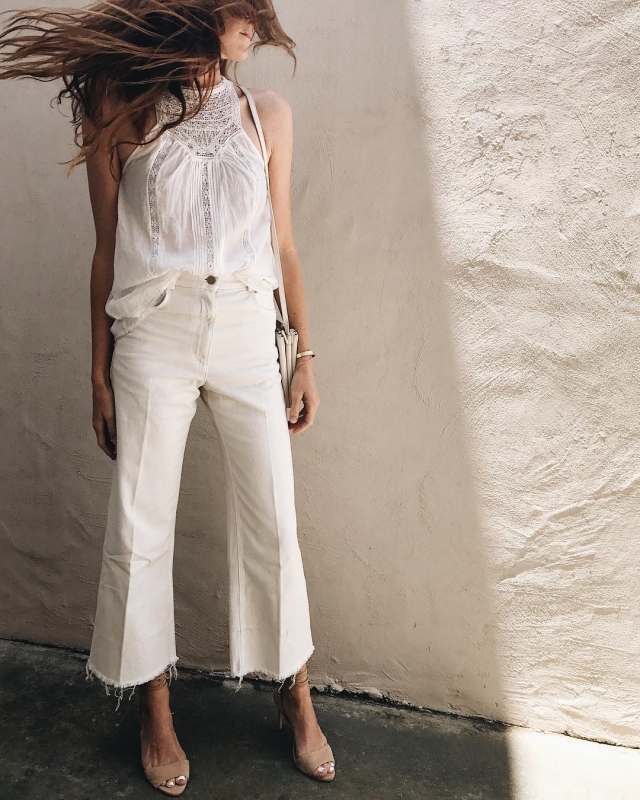 Plus suggestive que le short en denim, la mini-jupe en jean taille haute et effilochée s'impose comme le bas suavement nineties du moment, les modeuses ne jurant plus que par cette alternative estivale à leurs jeans vintages. Et si les jupes taillées dans de vieux Levi's de chez Re/Done font figure de must have, on préférera économiser 300 dollars en nous adonnant au DIY. Il ne s'agirait en effet pas d'entamer le budget dédié à l'achat de churros sur les plages espagnoles...