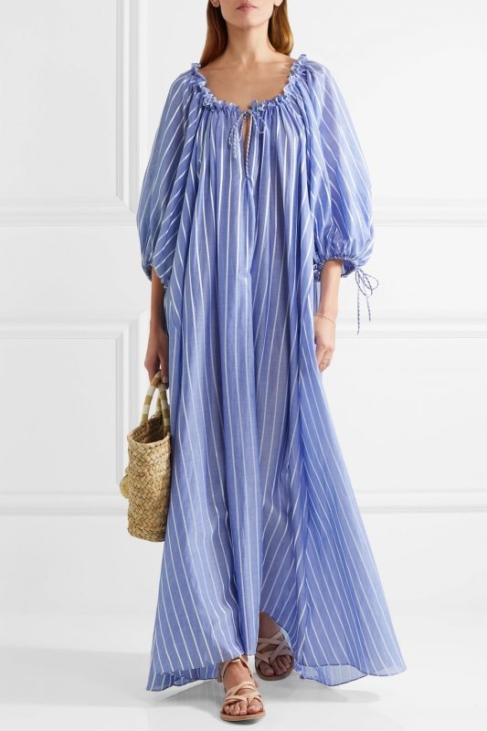 Inspirés aussi bien du désir d'élégance nonchalante de la créatrice que de sa collection de vêtements de nuit chinée au fil des ans sur les brocantes et autres marchés aux puces, les modèles de la section "sleepwear" de la griffe appellent en effet être détournés de leur fonction première et à se voir portés en dehors de notre chambre à coucher et de la terrasse ensoleillée de notre maison toscane…