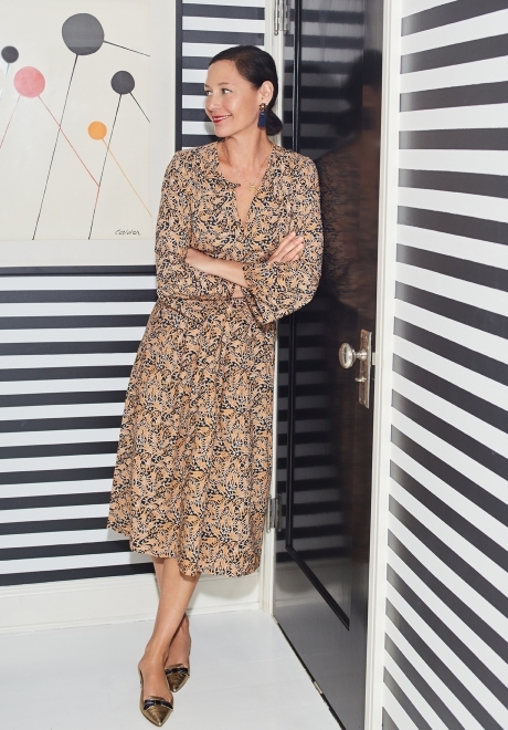 Des imprimés qui de loin ne laisseront pas distinguer leur dimension espiègle (et passeront pour un moucheté ordinaire ou un motif abstrait), mais qui de près révéleront toute leur saveur. Une appréciation en deux temps qui permettra de magnifier la dimension faussement sage de ces envolées graphiques.