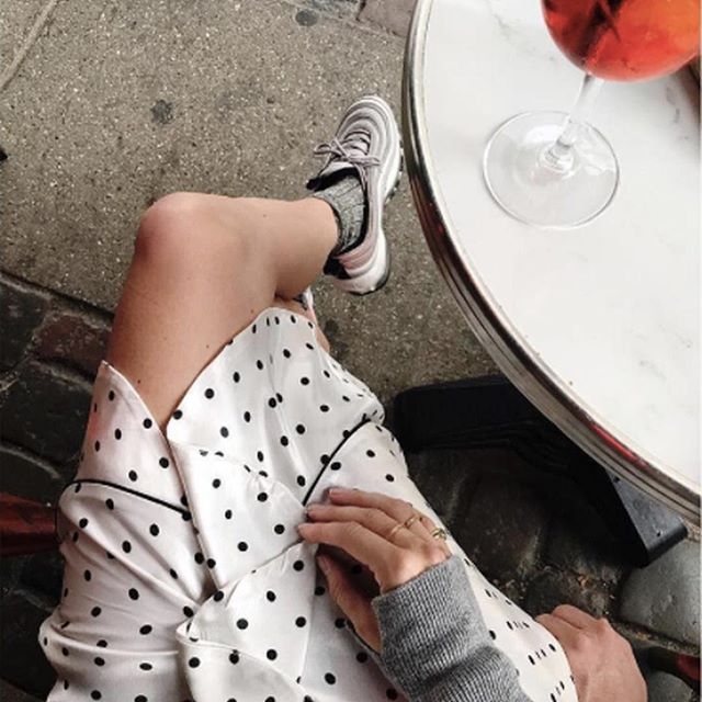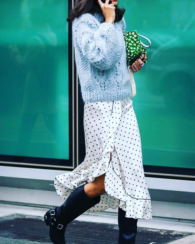 Du combo veste en tweed/tee-shirt/mini-jupe en jean tu abuseras (voir ici et là). Après avoir noté la présence de ce sublime pull-over Ganni chez nombre d'influenceuses, de n'avoir que 57 followers sur Instagram tu regretteras (voir ici, ici, ici, ici, ici, ici et là). Dans l'espoir de réussir enfin à classer le contenu de ton sac à main, pour une solution radicale tu opteras (Gucci). Afin de contempler les costumes de ses sept héroïnes sudistes, l'intrigue prévisible du dernier film de Sofia Coppola tu passeras outre. Ouverte sur un tee-shirt, ta chemise de bûcheron fétiche tu porteras (Yeezy). De manière non conventionnelle les pois de porter tu t'efforceras (robe Ganni, escarpins Balenciaga). Si tu mesures plus d'un mètre 76, à la tendance large sur large tu t'essaieras (Paul & Joe, Joseph). En prévision d'une attaque nord-coréenne, ton kit de survie (maxi couverture, sac oversize) avec toi quotidiennement tu emporteras (Céline). Au bar de l'Hôtel National des Arts et Métiers, pendant la fashion week un gin-tonic siroter tu iras. Afin de faire plaisir aux touristes asiatiques, de porter le béret - voir ici et là - un devoir tu te feras (Dior) Jupe midi fleurie et pull large en maille côtelée d'associer tu tenteras (voir ici et là).