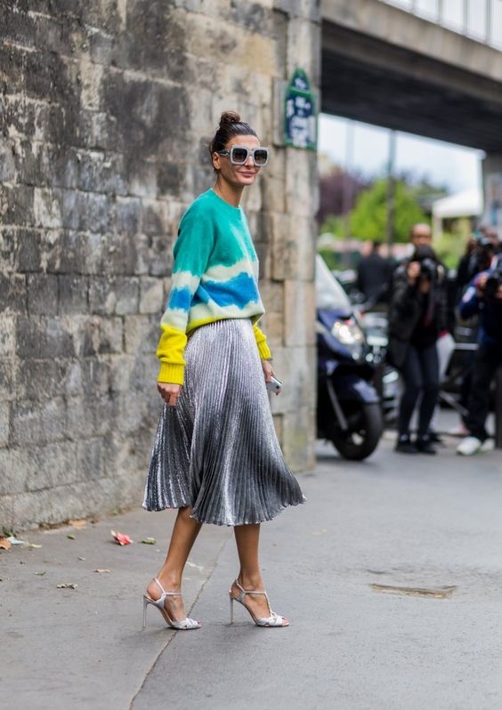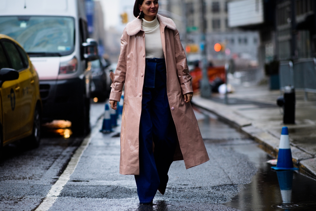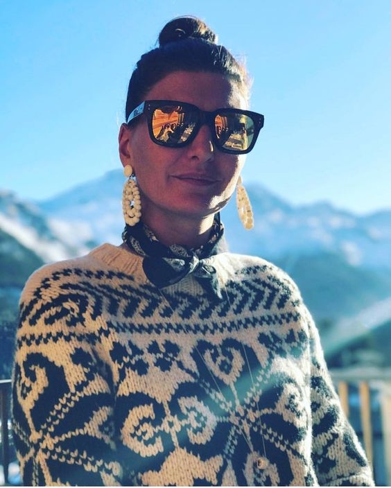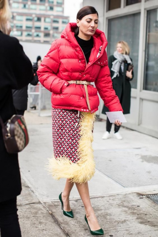 Booster son pull de montagne en arborant une paire de boucles d'oreilles oversize et raffinée (voir ici). Marier haut au volume XXL et bas ultra moulant (voir ici). Porter un foulard autour de son visage les jours de pluie ou de grand vent afin de protéger élégamment sa coiffure (voir ici et là). Calmer ses tops cropped en leur associant souliers plats et pantalons larges taille haute (voir ici). Imposer le régime dissocié à son look en télescopant bas chicissime et haut cosy (voir ici et là). Marier orange, marron et touches dorées (voir ici).
