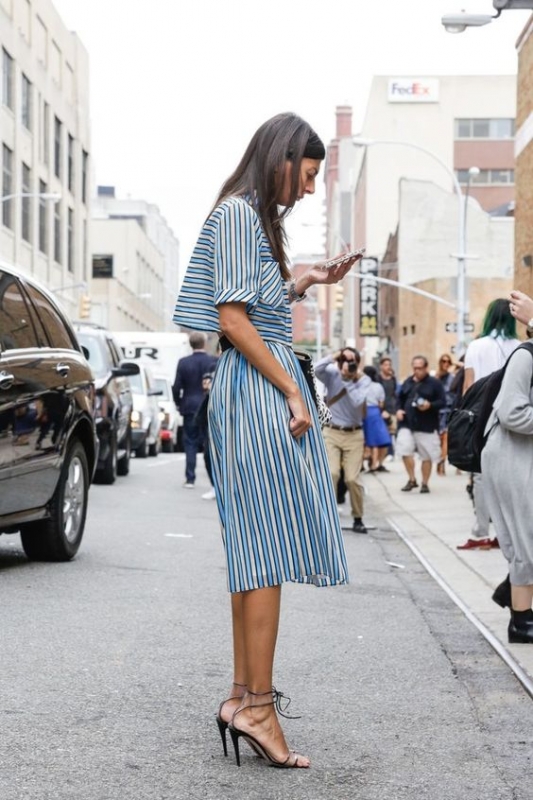 Chiciser une robe chemise midi au contact d'une large ceinture noire vernie et d'une paire d'escarpins réglisse (voir ici). Réhausser le beige via une touche de jaune vif ou de rose (voir ici, ici et là). Gommer la nature "gentleman farmer" du velours en optant pour un pantalon en velours côtelé légèrement large, 7/8, ceinturé taille haute et porté avec des sandales ultra fines à talons (voir ici). Dédramatiser ses jupes corolles midi en leur associant un tee-shirt funky (voir ici). Réhausser un look noir et blanc de très fins accessoires dorés (voir ici). Oser le total look rose en le conjuguant dans une tonalité casual/sophistiquée (voir ici).