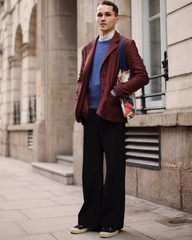 Au sein de ce look unisexe, je note tout particulièrement la présence du col montant volanté, qui n'a à mes yeux pas son pareil pour twister des pièces casual telles que le pull col rond ou le sweat. Aussi désuet que délicat, cet artifice possède en effet ce qu'il faut de discrétion et de panache pour transcender deux de mes styles de prédilection, à savoir le sportswear et le minimalisme.