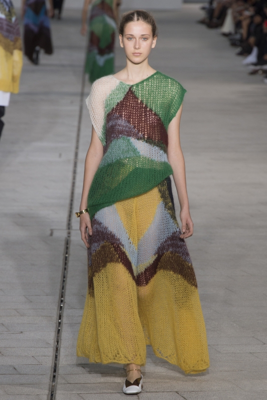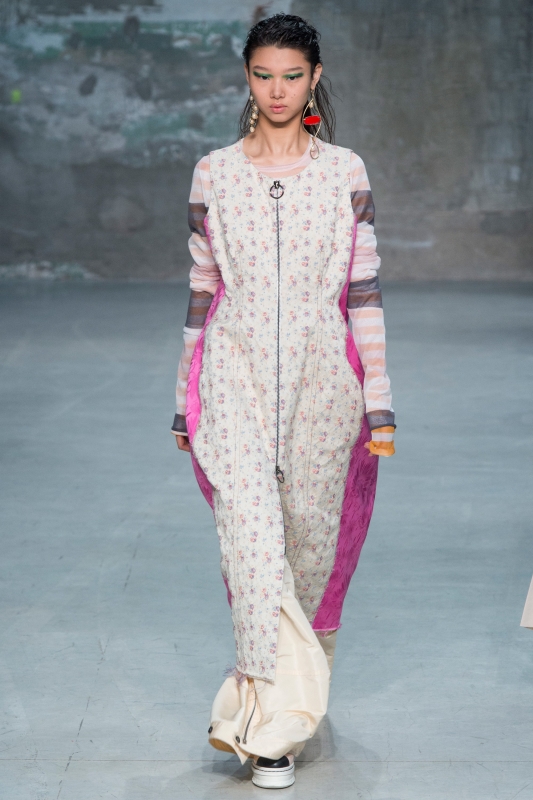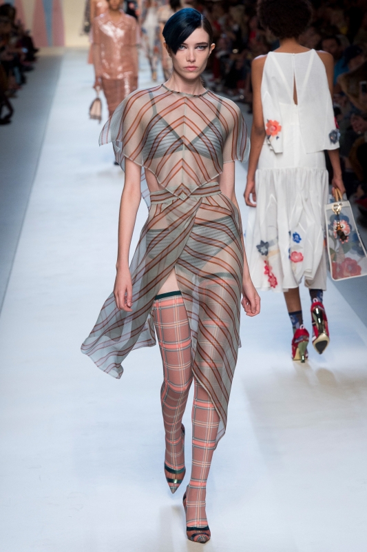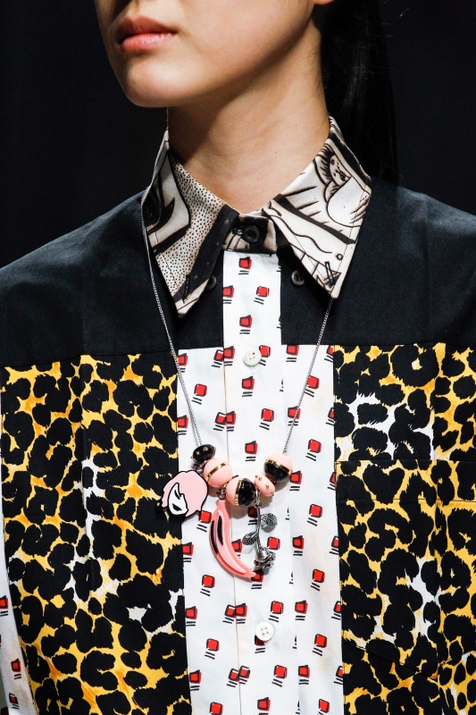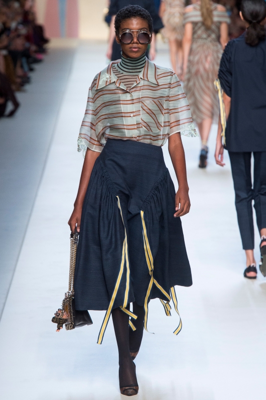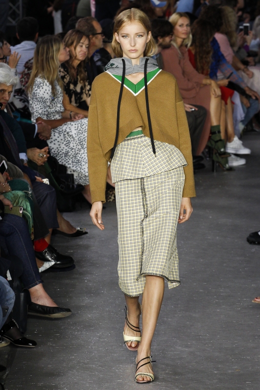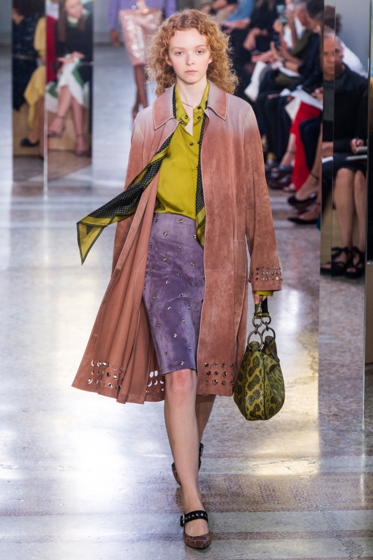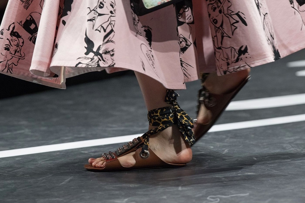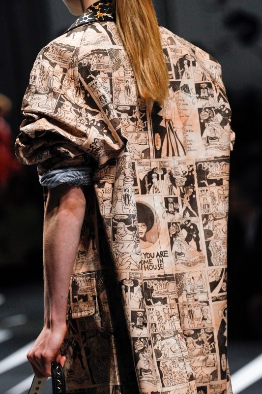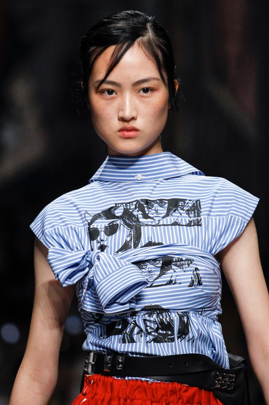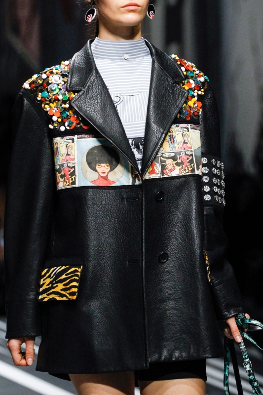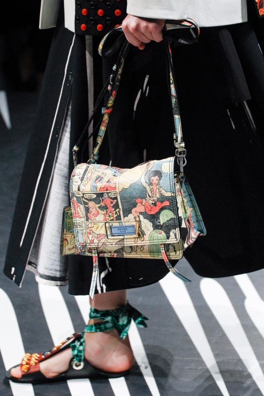 Plus militante que jamais, Miuccia Prada livre cette saison une collection aux volumes souvent délibérément amples (de manière à ne pas encourager une féminité premier degré) et aux graphismes empruntés à des dessinatrices ayant pour point commun de représenter des femmes loin des stéréotypes de genre (Brigid Elva, Joëlle Jones, Stellar Leuna, Giuliana Maldini, Natsume Ono, Emma Ríos, Trina Robbins et Fiona Staples). Pour le reste, entre tailoring plus que parfait, énergie froide, détails funky contrebalancés par une allure générale stricte, look d'executive woman pour femme/enfant et ornementation ostentatoire contredisant des pièces sévères, la grammaire Miuccienne ne change pas.