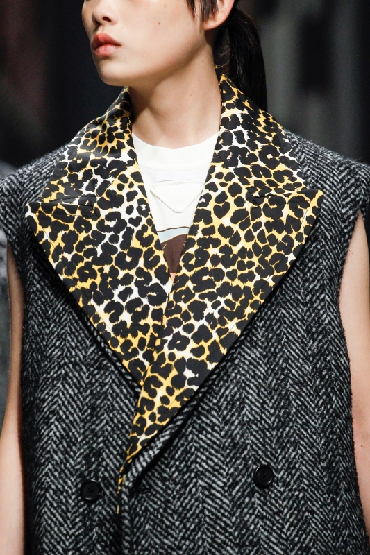 On notera par ailleurs que les manteaux aux allures de pages de comics donnent envie de se transformer pour un temps en femme-sandwich, que le nouage de chemise risque de devenir la nouvelle marotte fashion et que l'association chevron/léopard mérite que l'on s'y attarde.