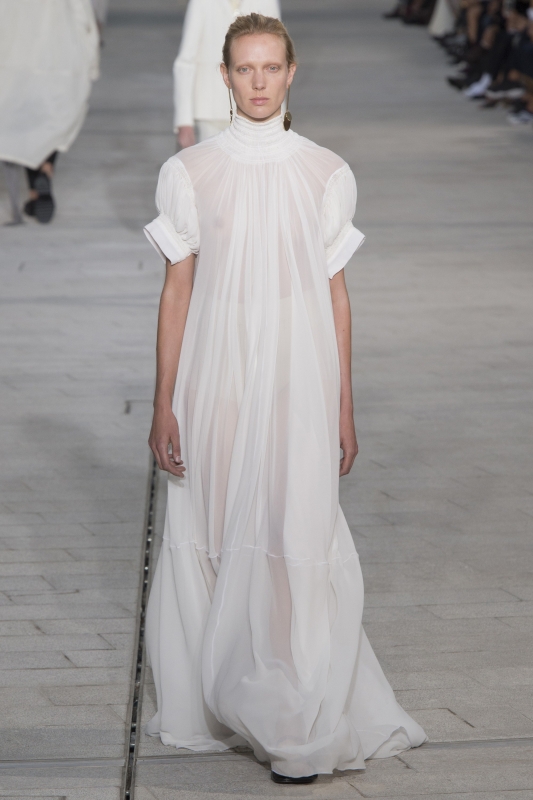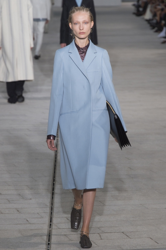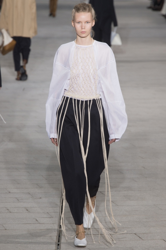 La griffe Jil Sander serait-elle sur le point de regagner les faveurs de la fashion sphère ? C'est en tout cas ce que laisse espérer la première collection du couple Meier. Il faut dire que l'alliage artistique de Lucie (ex-Dior) et de Luke (ex-Supreme) laissait présager du meilleur. Intelligent, épuré sans être réfrigérant, piqué de références aux volumes minimalistes des années 90, agrémenté de macramé contredisant la radicalité de certaines lignes et entrecoupé de passages à la cosyness sobrement folk, cet opus rend assez optimiste sur le futur de la marque.