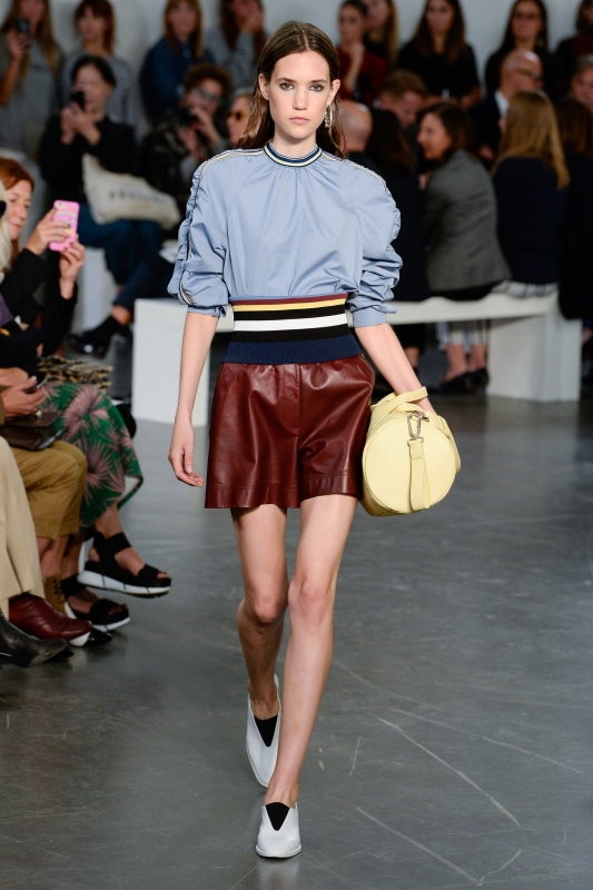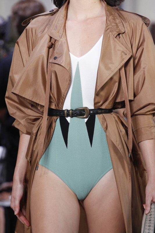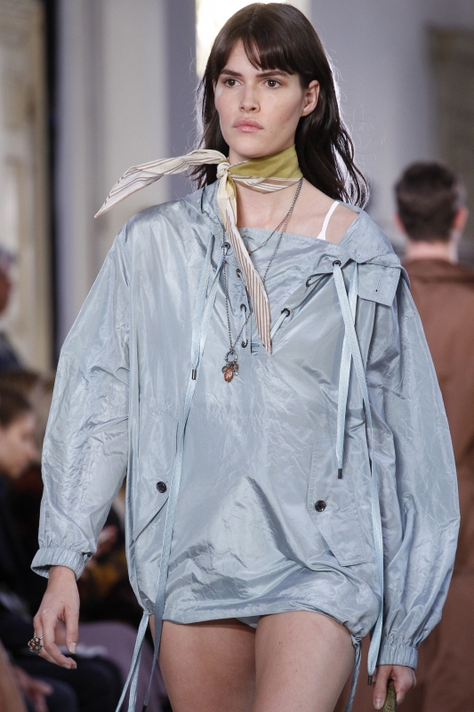 On note par ailleurs que le mix vichy/cuir perforé est à copier sans tarder et que la vareuse en nylon bleu fumé ravira certainement les adeptes de l'athleisure.