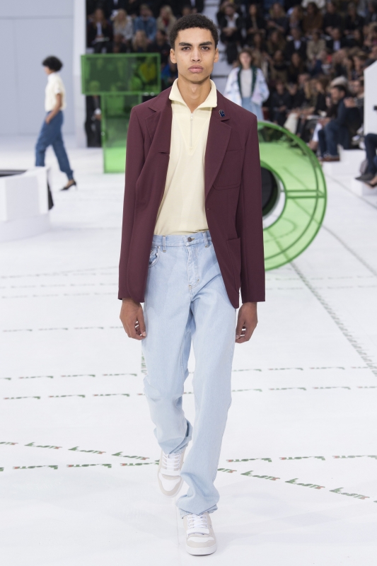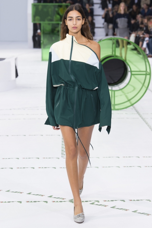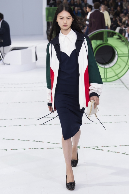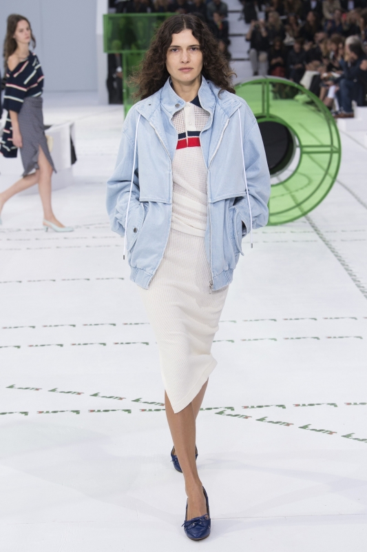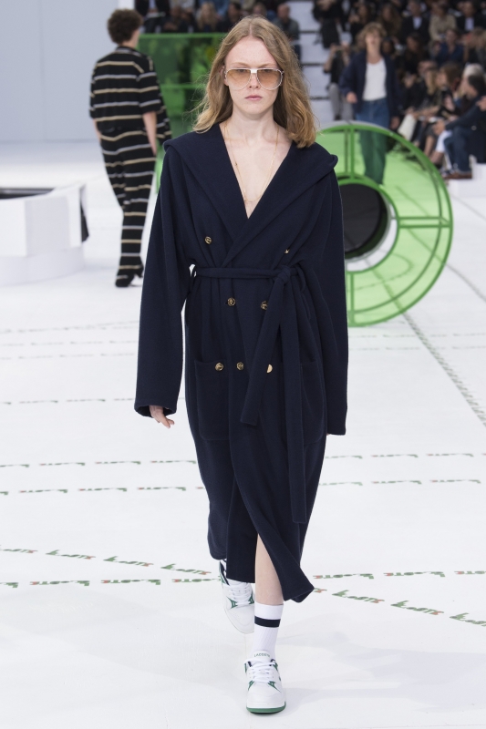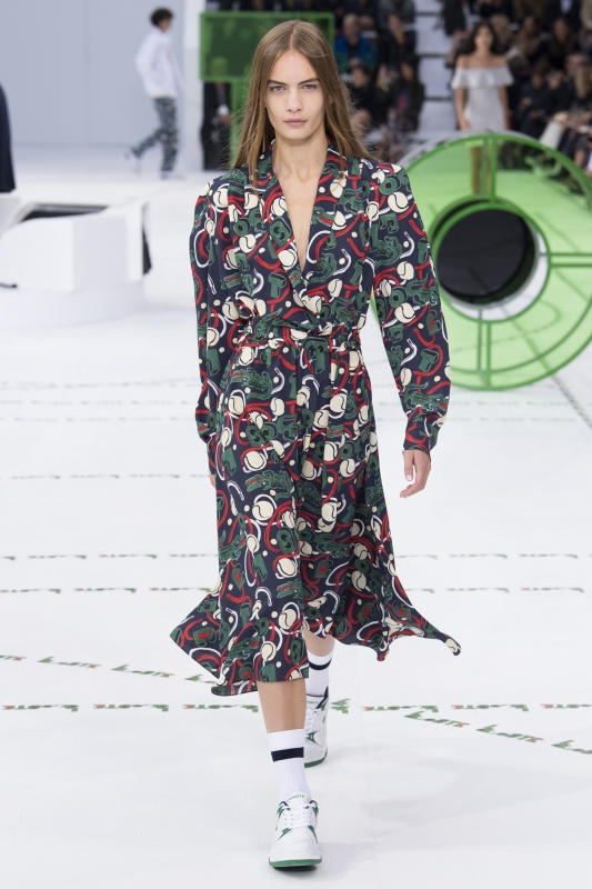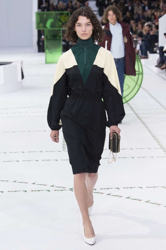 Dépourvue de toute esbroufe égotique, la dernière collection Lacoste démontre une fois de plus que Felipe Oliveira Baptista n'a pas son pareil pour faire vivre l'héritage de l'entreprise française. En mêlant énergie urbaine et confort rétro, le sportswear gagne sous ses doigts en élégante désinvolture. On retiendra tout particulièrement cette robe peignoir pour Rocky Balboa en goguette à Saint-Germain-des-Prés, les variations autour de la veste de survêtement (voir ici, ici, ici et là), cette robe forties à l'imprimé croco quasi abstrait, mais aussi ces deux combos de coloris (voir ici et là).
