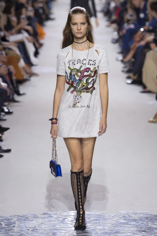 Selon Suzy Menkes, "Maria Grazia Chiuri s'adresse à la génération de sa fille". Fait-elle référence à cette génération que l'on dit nourrie aux virées shopping chez Zara, à l'émotion immédiate, au besoin d'évidence et aux punchlines instragrammables ? Si oui, alors la collection s'adresse effectivement bien à elle.