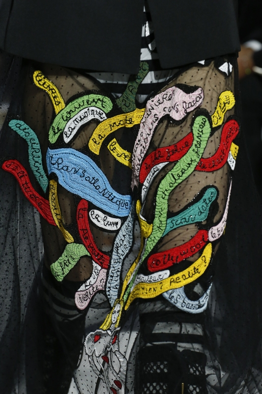 Sous l'impulsion de Maria Grazia Chiuri, Dior semble en effet être devenu l'étendard d'une mode que l'on dit plus proche des femmes, mais qui se révèle dans les faits relativement banale et dramatiquement simpliste. Et si les références à l'esthétique subversive et graphique de Niki de Saint Phalle permettent d'insuffler un peu de caractère à certaines pièces (voir ici et là) et d'offrir aux ateliers Dior la possibilité de faire rimer modernité et dextérité géniale (voir ici et là), cela ne suffit pas à magnifier la dimension bien trop commerciale de cette collection…