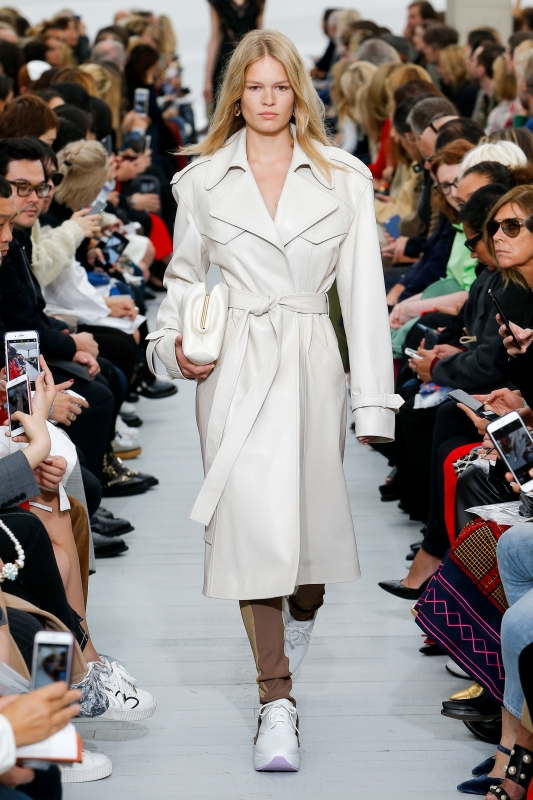 Les collections Céline ont beau rimer souvent avec stylisme alambiqué et modèles un brin trop conceptuels, celles-ci n'en regorgent pas moins généralement de pièces intemporelles et magistralement bien coupées. Imaginés pour l'été 2018, les blazers pour working girl ambitieuse, les pantalons larges esprit néo-Wall Street, les jupes faciles à vivre aux plissés asymétriques et les trenchs faussement stricts constituent ainsi les basiques d'une garde-robe idéale. Sans parler des robes à la couvrance austère et aux paradoxaux sequins disco (voir ici et là) qui illustrent à merveille l'irrésistible fantasie cérébrale de Phoebe Philo.