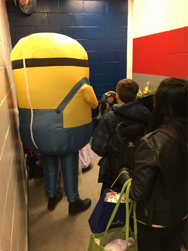 Et si la fête d'Halloween est commerciale à souhait (Starbucks a d'ailleurs sorti un frappuccino pour l'occasion), elle n'en est pas moins à l'origine de moments assez savoureux. Je pense notamment à notre fou rire devant la mine écoeurée de Charles découvrant l'intérieur d'une citrouille, au plaisir de voir à la nuit tombée les ombres de nos "pumpkins" transformer l'appartement en maison hantée ou encore au fait de pouvoir aller à l'école habillé en super-héros le vendredi précédant le jour officiel d'Halloween. Une école qui prend d'ailleurs tout cela très au sérieux, au point d'encourager les parents à venir également déguisés. Ce matin, en accompagnant son fils dans sa classe, Julien a ainsi eu le plaisir de croiser un père transformé en Minion, une mère en Raiponce et une autre en Superwoman…