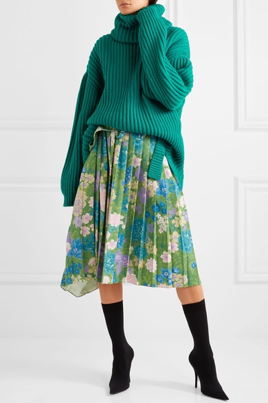 Intronisé "pièce must have" de l'hiver par Demna Gvasalia, le pull oversize quitte le registre du grunge cosy pour venir s'immiscer au sein d'un dress code néo bourgeois où la jupe crayon à imprimé Prince de Galles remplace le jean déchiré. Avec ses manches trop longues et sa carrure exagérément tombante (Stella McCartney), il sera ainsi l'allié des atours classiques/stricts/dadame et se glissera sur le devant des pantalons à pinces 7/8 et des jupes midi aux motifs tapisserie. On note par ailleurs que son ampleur gourmande lui intimera de se marier à des bottines ou à des cuissardes ultra moulantes.