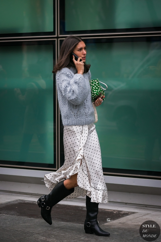 Une paire de boucles d'oreilles clips te rappelant les héroïnes des années 80 chez le brocanteur du coin pour 5 euros tu t'offriras. Afin d'éviter l'effet "Grock", en mode 7/8 ton pantalon à carreaux tu choisiras. Certains looks Dries Van Noten à copier au pied de la lettre tu t'autoriseras. Aux désormais trop sages pois blancs sur fond noir, leurs cousins germains à pois noirs sur fond blanc tu privilégieras. Afin de pallier la frustration enfantine de n'avoir jamais pu mettre la main sur un déguisement de "mousquetaire-cowboy", les cuissardes Isabel Marant joyeusement tu t'achèteras (contre l'avis général). Au contact d'un pull ultra douillet tes longues robes à pois tu réconforteras (voir ici). Chez Clare V, à la fameuse pochette léopard le sac circulaire monochrome tu préféreras (voir ici et là). Avec une gourmandise non dissimulée, du trio jaune/blanc/marron joyeusement tu abuseras (Sandro). Après avoir lu l'article de Lili Barbery-Coulon dédié aux cheveux fins, comment prendre soin de ta désespérante absence de masse capillaire enfin tu sauras. Quelles que soient les prévisions météo annoncées par l'invité de Yann Barthès, aux boots de yéti mal luné tu t'interdiras de succomber (Prada).