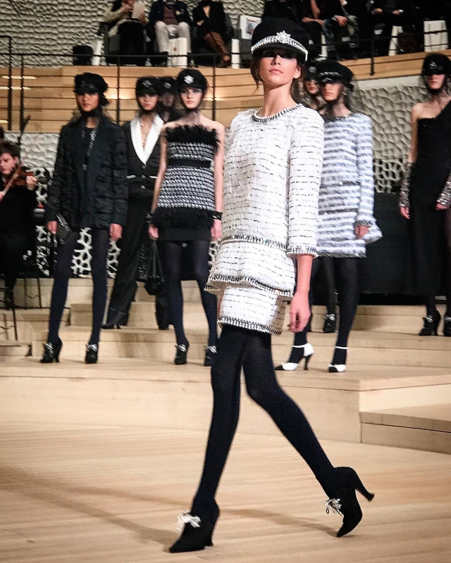 Ajoutez à cela des détails spécialement pensés pour fournir de la matière aux réseaux sociaux - entre casquette de marin accompagnant les invitations (voir ici et là), distribution de décalcomanies (voir ici), présence de "it" girl sur le catwalk (voir ici), apparition de Choupette en backstage et foultitude d'accessoires photogéniques (voir ici, ici, ici et là) - et vous obtiendrez un événement encensé par la critique, relayé par les influenceurs et permettant de continuer à faire rimer Chanel avec magie.
