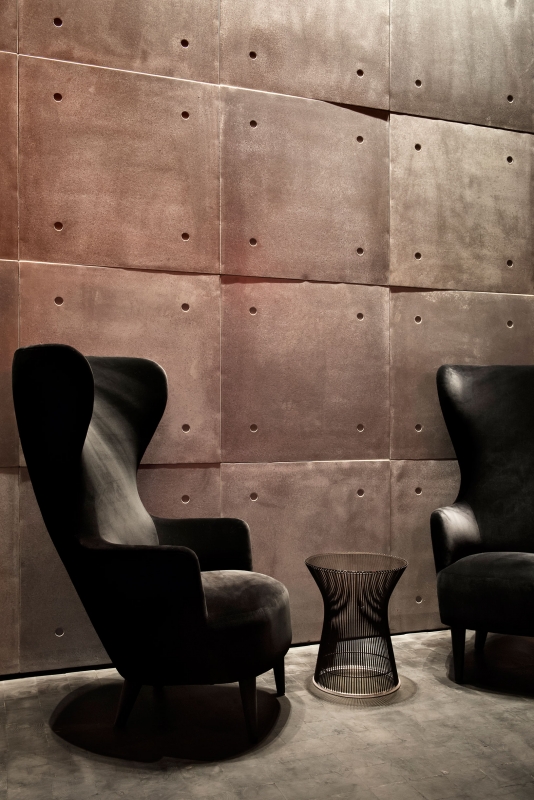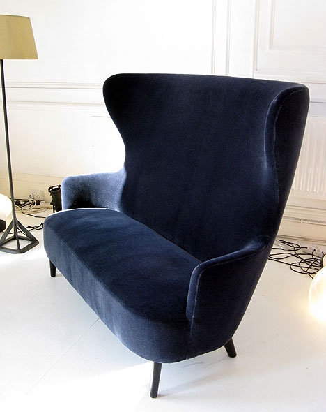 Mêlant esthétique 17ème siècle, courbes 18ème et énergie contemporaine, Tom Dixon donne naissance avec sa Wingback à un sofa-cachette dont le volume arrondi et les oreilles surdimensionnées évoquent pour moi aussi bien un antre maternel que le concept de douceur sophistiquée. Une fois face à ce cocon aristocratique, l'envie de s'y lover munie d'un roman-fleuve se fait ainsi intensément sentir. Il ne nous reste dès lors plus qu'une chose à faire : aller nous immerger dans l'univers de Tom Dixon en nous nichant - le temps d'un dîner au Bronte - au sein de l'une de ses attirantes créations…