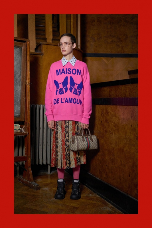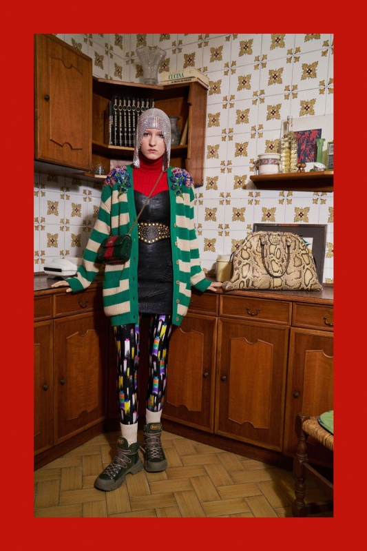 On aurait cependant tort de s'arrêter à une silhouette tarabiscotée digne de notre ancienne - et un brin loufoque - correspondante anglaise. Car au delà de ses assemblages insolites, Alessandro Michele est le premier depuis longtemps à nous inciter à reprendre le pouvoir sur notre dress code, ses innombrables cadavres exquis nous poussant à revoir nos positions en matière d'incongru, de ridicule, de ringard et de "fashion faux pas". Entre les lignes de ses défilés outrageusement azimutés et de ses lookbooks kaléidoscopiques (voir ici, ici et là), il nous invite ainsi à nous affranchir des barrières nous empêchant de tester, d'expérimenter et de nous amuser vestimentaire parlant.
