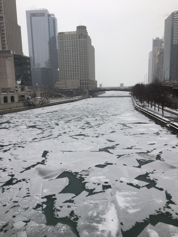 Je n'avais jamais été confrontée à des températures aussi basses (-15°C). Sentir le froid statufier mes orteils, enserrer ma tête dans un étau glacé et faire couler des larmes sur mes joues durcies par le vent polaire est assurément une expérience en soi… Malheureusement, aussi fascinantes que furent ces conditions hostiles (nul doute que la vision de la Chicago River gelée restera longtemps gravée dans ma mémoire), elles n'en ont pas moins largement limité la durée de nos déplacements. Entre les chutes de neige rendant les trottoirs peu praticables, les crevasses fissurant doigts et talons et la peur de voir Charles se transformer en Mister Freeze (en dépit des innombrables couches sous lesquels nous avions pris soin de l'ensevelir), nous avons ainsi découvert Chicago à un rythme lent, entrecoupé d'innombrables pauses dans des endroits chauffés permettant de faire remonter - au moins un temps - notre température corporelle…