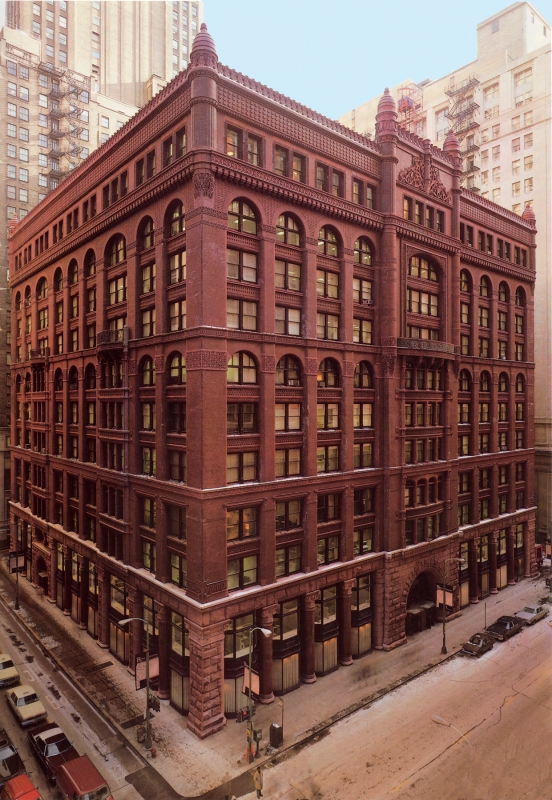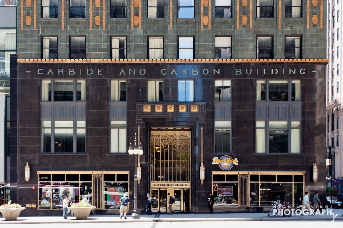 Au fil de notre séjour, deux immeubles m'ont par ailleurs particulièrement touché : Le Carbide & Carbon Building : Avec son granit poli couleur réglisse, sa silhouette sombrement luisante et son sommet doré à la feuille d'or, ce chef-d'oeuvre Art Déco m'a saisie tant par son raffinement que par sa force. Un géant délicat dont le rez-de-chaussée était muré (pour travaux ?), accentuant ainsi la dimension mystérieuse du bâtiment. Le Rookery Building : Considéré comme le plus ancien gratte-ciel de Chicago, ce bâtiment à la façade de briques et de marbre rouge intrigue de par la multiplicité de son ADN : on y distingue ainsi pêle-mêle des influences vénitiennes, romanes ou encore byzantines. Mais pour découvrir le point d'orgue de cette création de Daniel Burnham et de John Wellborn Root, il faut en franchir les portes : le dernier étage de l'immeuble abrite en effet la plus majestueuse et sophistiquée des verrières…