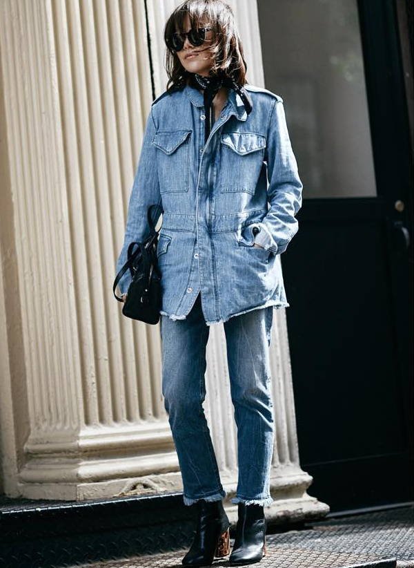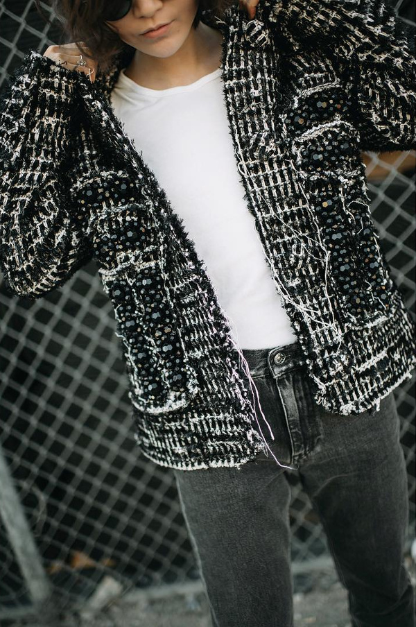 Faire l'acquisition d'une veste type Chanel afin d'upgrader facilement le duo jean/tee-shirt (voir ici).