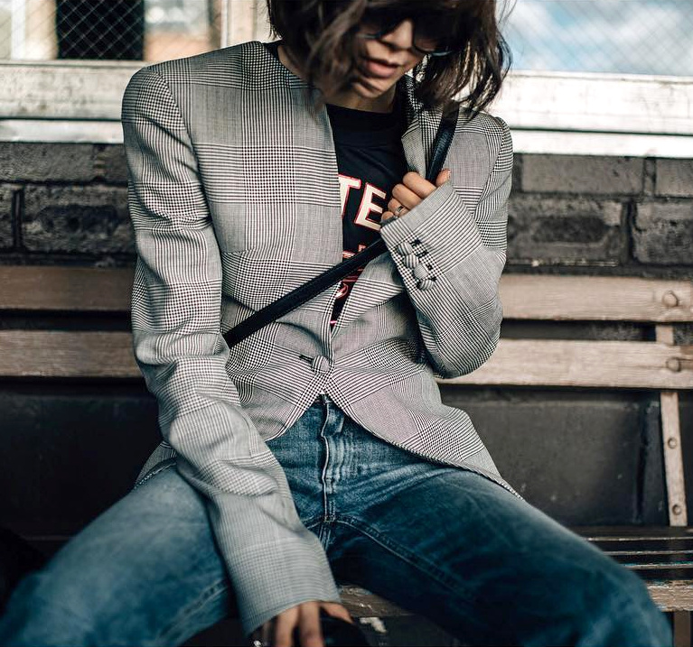 Réhausser l'aura du tandem jean/tee-shirt au contact d'un blazer néo-chic (voir ici).
