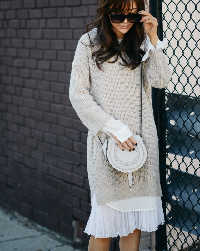 Glisser une robe en voile sous un pull oversize (voir ici).