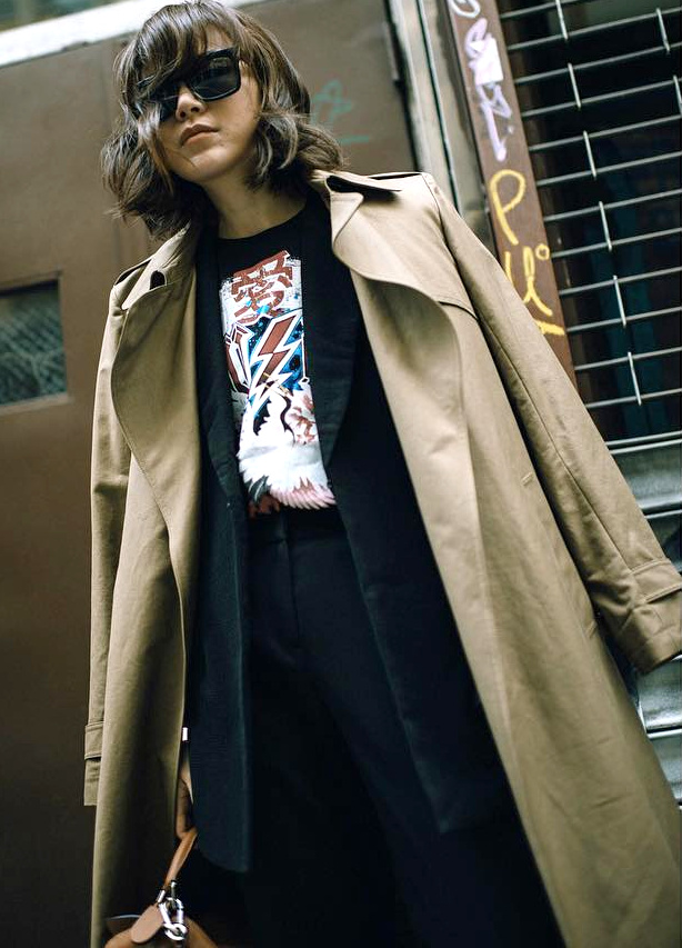 Insérer un tee-shirt rock au sein du look costume masculin/trench-coat (voir ici).