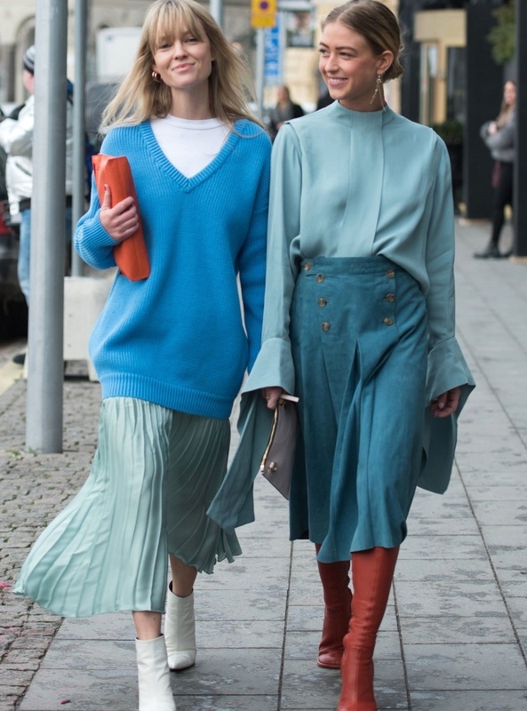 Je retiens l'association pull long sur jupe plissée, pour peut-être enfin m'approprier cette pièce en hiver!
