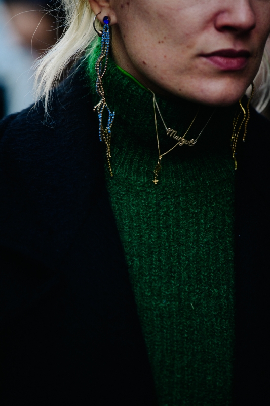 La dimension cosy/féminine du duo long pull sur jupe plissée mi-longue retient l'attention (voir ici). Lilas et violet tentent une percée (voir ici et là). Les franges se consomment en mode débridé (voir ici). Les accumulations de fines chaînettes se font sur les cols roulés (voir ici et là). La capuche amovible tente de devenir un couvre-chef à part entière (voir ici). Plus subtil que le mix rose/rouge, le tandem rose/bordeaux tire son épingle du jeu (voir ici). Les tendances massives ont laissé place à une flopée de micro tendances (voir ici). Le manteau "statement" permet de réchauffer un no look avec panache (voir ici). Les maxi boucles d'oreilles continuent de jouer les trouble fêtes (voir ici et là). La superposition de cols permet de twister une pièce classique (voir ici).