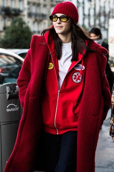 La version rouge du pardessus teddy bear parvient à faire oublier son homologue camel (voir ici et là). La Parisienne n'est pas à l'abri des pièges tendus pas ces fameux vêtements cools mais peu flatteurs (voir ici). Le sous-pull se glisse sous une chemise portée déboutonnée et glissée dans le pantalon (voir ici). Le rouge apparaît comme la couleur à décliner sous toutes les formes (voir ici, ici, ici et là). En se déclinant à l'infini, les manteaux à carreaux ne font d'accélérer leur inévitable chute (voir ici, ici, ici et là). Le mix rose et rouge peut générer le pire comme le meilleur (voir ici et là). Les modeuses plébiscitent les maxi boots de montagne pour leur capacité à rendre leurs jambes encore plus fines (voir ici et là).