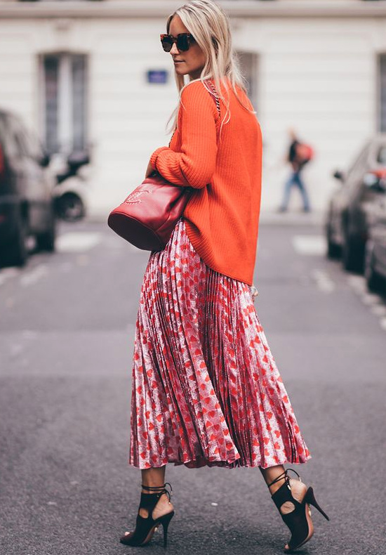 Twister un tailleur ultra chic au contact d'un tee-shirt imprimé (voir ici). Mixer des imprimés identiques se déclinant dans des teintes différentes (voir ici). Marier rouge, orange et rose (voir ici). Réhausser un total look blanc d'une touche de jaune (voir ici). Profiter de la dimension classique de certains duos de coloris (bleu marine et blanc) pour s'autoriser des volumes inattendus (voir ici). Pimenter ses jupes midi et autres robes longues en les associant à une paire d'imposants godillots (voir ici et là). User et abuser du trio trench/petite robe légère/boots massives (voir ici). Associer safran, marron, bleu marine et bleu jean (voir ici). Dédramatiser une robe du soir en la réchauffant au creux d'un blouson aviateur oversize (voir ici).