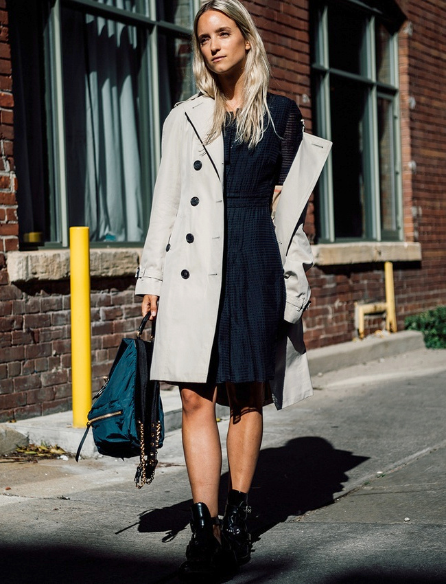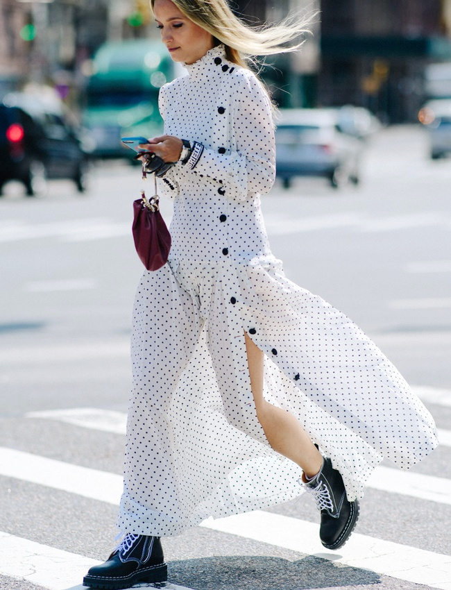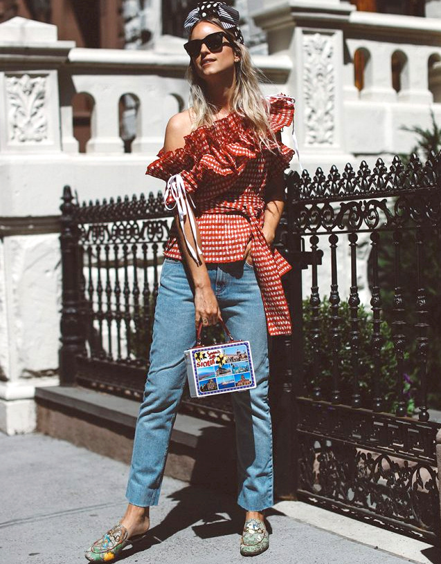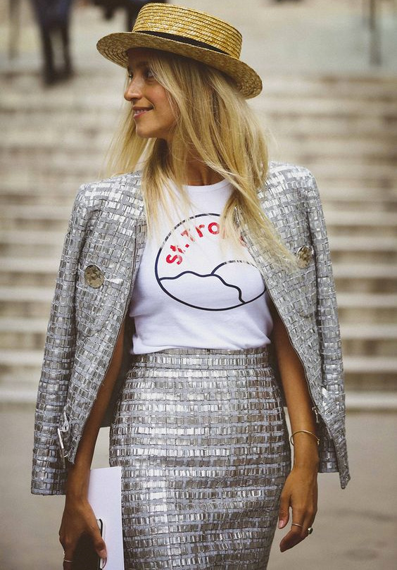 Déboutonner généreusement sa chemise en jean au sein d'un total look denim (voir ici). Casualiser le tandem talons/jupe midi plissée au contact d'un très long pull (voir ici et là). Associer vert lichen et rayures marinière rouge et blanc (voir ici). Réhausser un look casual via une paire d'escarpins haute en couleur (voir ici). Ne pas hésiter à se réapproprier le turban cher aux années 40 (voir ici). Plébisciter le chic élégant de la jupe trapèze taille haute (voir ici). Patiner la dégaine "petite fille sage" d'une robe blanche en dentelle au contact d'un blouson en jean oversize légèrement destroyed (voir ici). Injecter une légère touche de désinvolture à une veste ultra chic en la portant avec un jean (voir ici). Apaiser la densité d'une mini robe fleurie à volants au contact d'une paire de sandales plates épurées (voir ici).