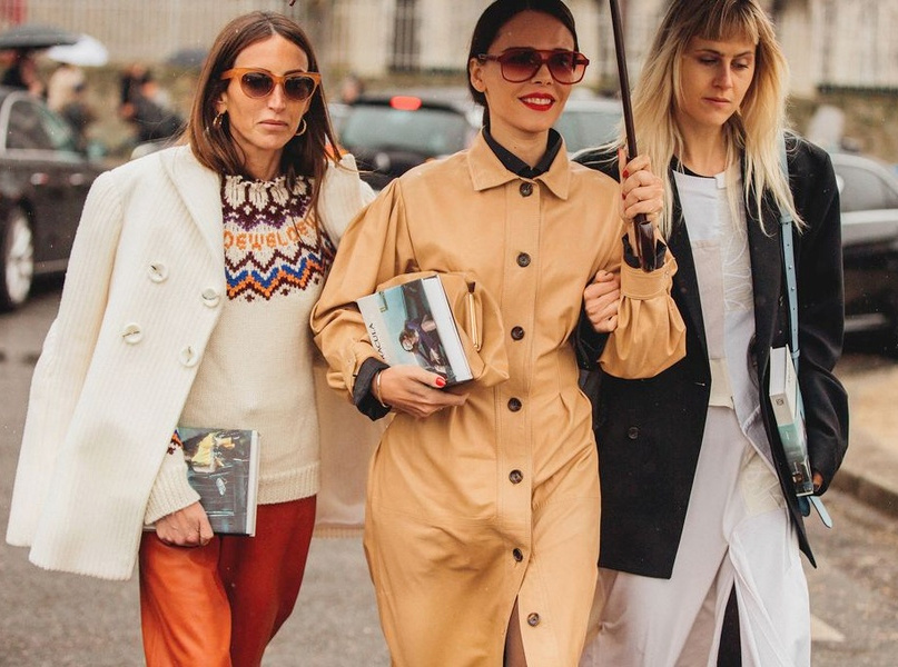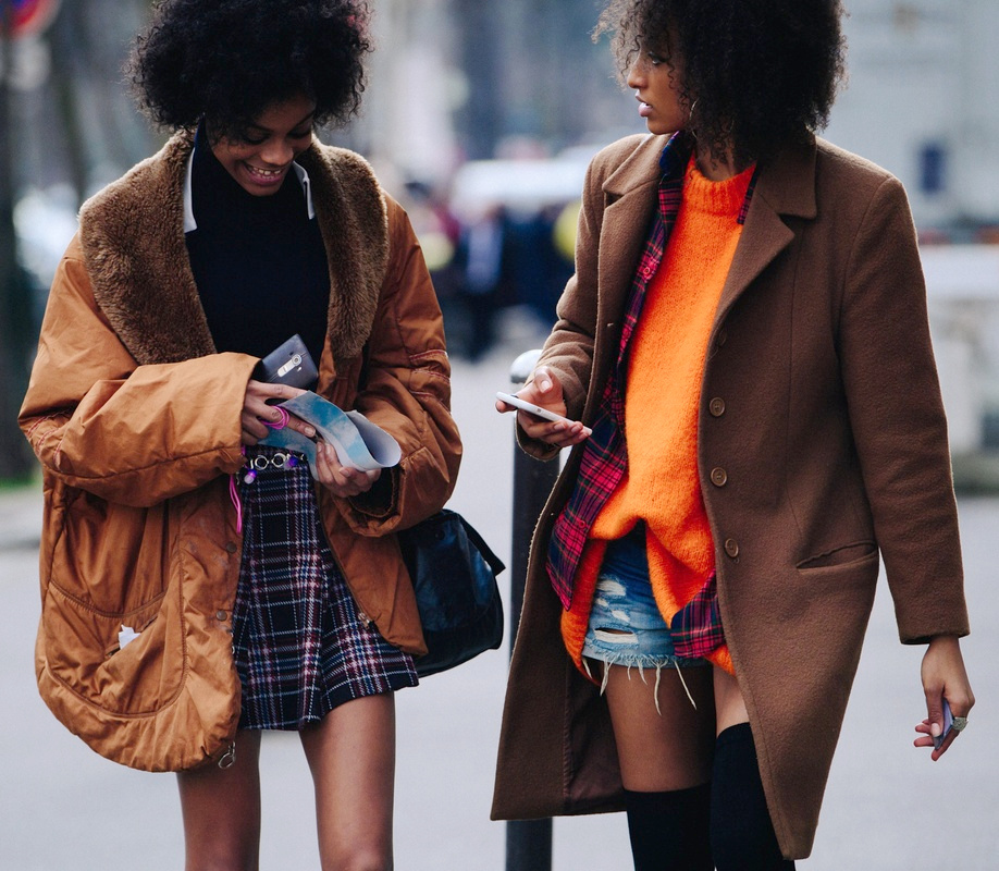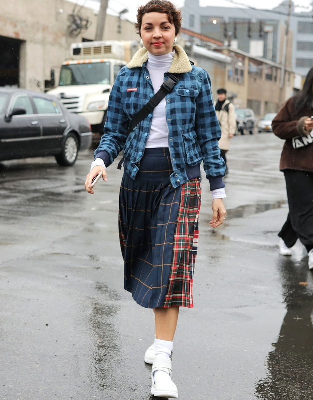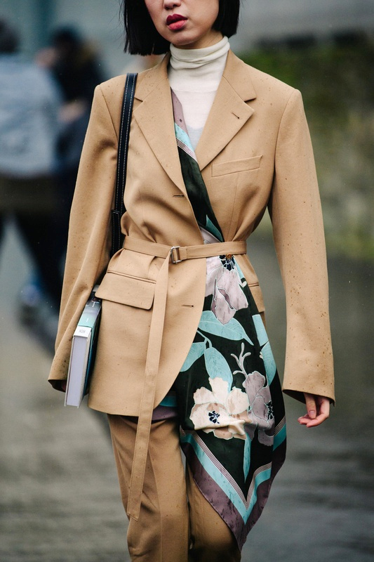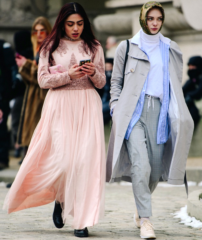 Le camaïeu de teintes reste une valeur sûre (voir ici, ici, ici et là). Le boutonnage à la Balenciaga fait école (voir ici et là). L'écharpe (ou le foulard) se porte à la romaine (voir ici et là). Même les meilleures ne sont pas à l'abri d'un joyeux fashion faux pas (voir ici). Les robes fleuries mi-longues gagnent en modernité rétro en se réchauffant au creux d'une veste de jogging (voir ici). Les sac à main s'encanaillent au contact de luxueux filets à provisions (voir ici et là). Le trio seventies veste en peau retournée/jean flare délavé/converses blanches a la cote (voir ici). Pied de poule, vichy et autres mini carreaux viennent coloniser trench XXL et manteaux masculins (voir ici, ici, ici et là). A une époque où les mix and match ne respectent plus aucune règle, associer deux imprimés différents mais choisis dans la même teinte apparaît comme un parti pris presque sage (voir ici). Zara aura réussi à séduire bon nombre de modeuses avec sa jupe plissée tartan (voir ici et là).