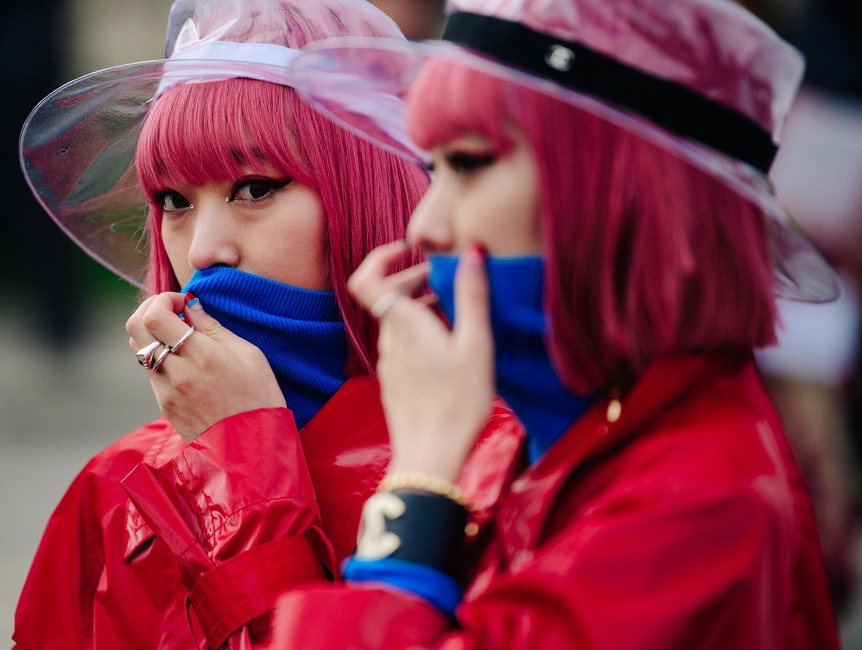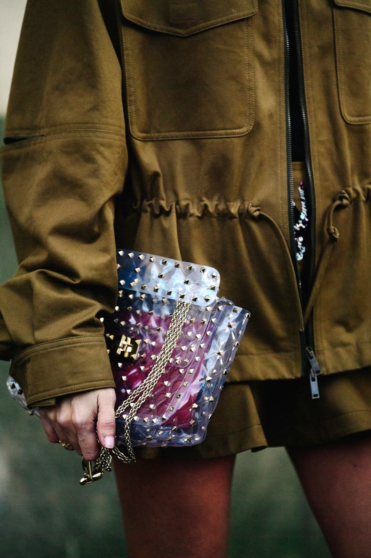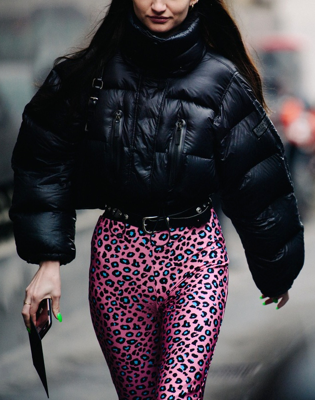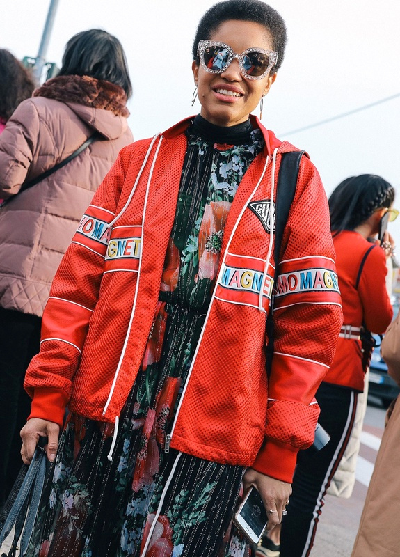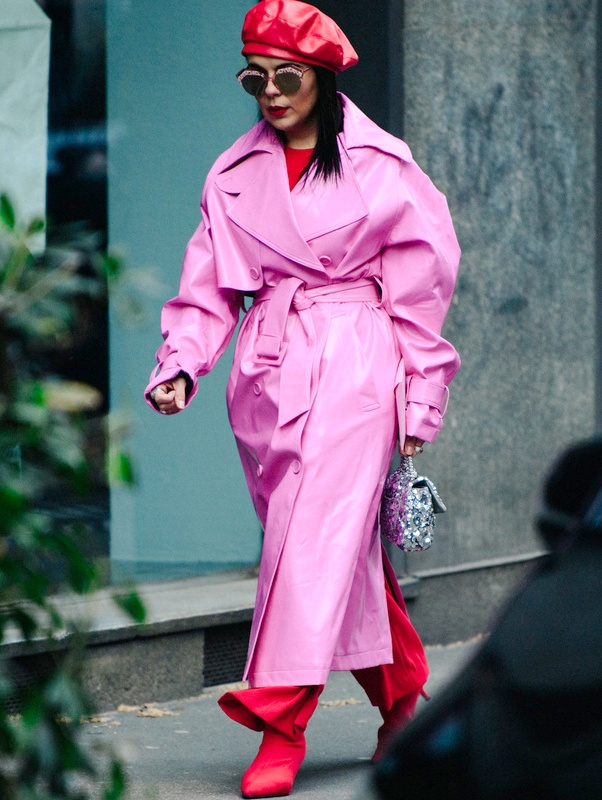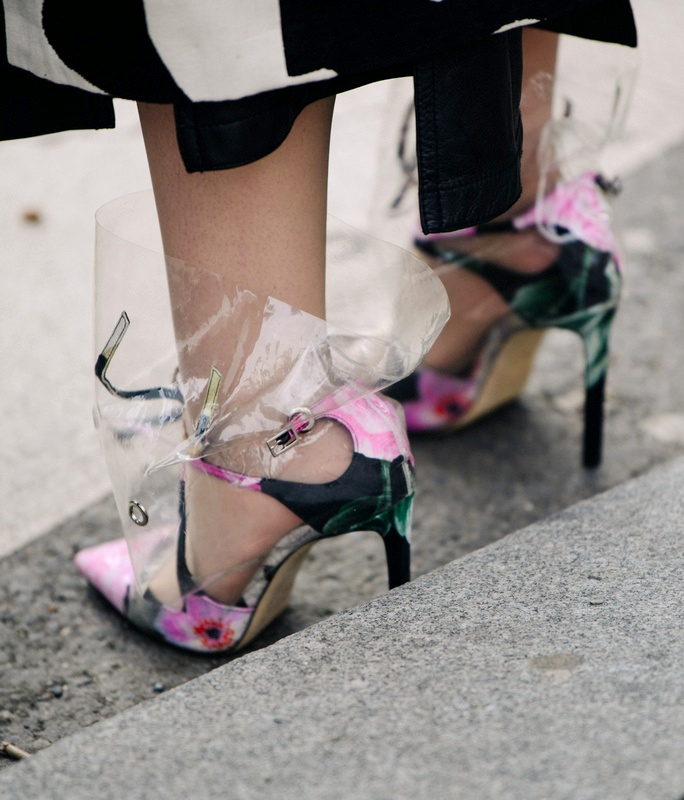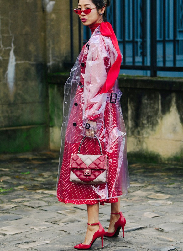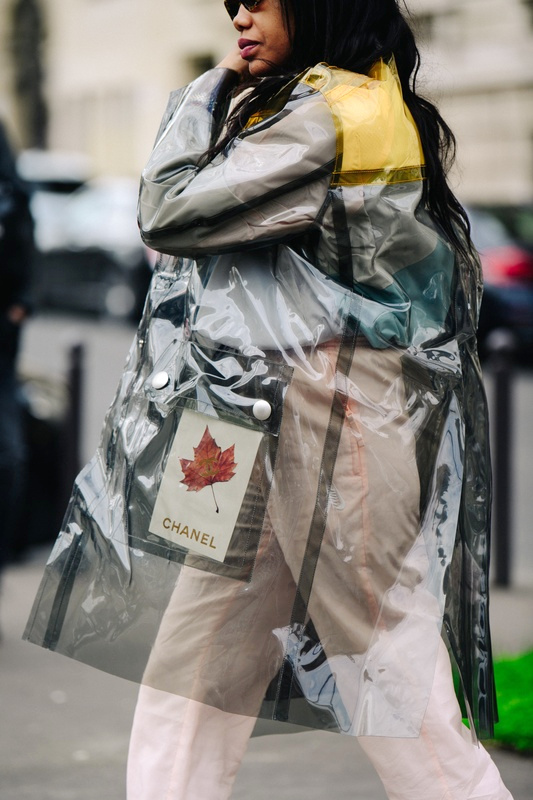Les teintes chocolat et camel se mixent à merveille à l'orange (voir ici, ici et là). La montée en puissance du plastique translucide célèbre à sa manière "l'ère de la transparence" (voir ici, ici, ici, ici et là). Rose et rouge continuent de faire bon ménage (voir ici, ici et là). Seule condition : savoir rester subtil… La nouvelle superficie des semelles des "ugly baskets" offre aux modeuses une stabilité inégalée (voir ici, ici et là). Les vêtements deviennent des cimaises faussement contestataires (voir ici, ici et là). Avec son blouson en cuir et son carré sombre strié d'argent, Rei Kawakubo n'en finit pas d'être inspirante (voir ici).