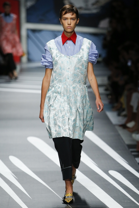 Afin de tenter de pallier l'amertume générée par tes rêves avortés de road trip en Arizona, les incroyables boots en cuir intarsia de chez Gucci tu t'offriras (voir ici). Leurs jarretelles de mollet sans regret aux filles Gucci tu laisseras (voir ici). En t'inspirant du show Prada printemps/été 2018, à cultiver une dégaine "100% Man Repeller" tu apprendras (voir ici, ici et là). En allant descendre les poubelles, de la similitude entre l'ouverture à coulisse des sacs à détritus et les encolures aperçues sur les catwalks les plus en vue tu t'étonneras (Céline, Calvin Klein). Rose layette et teinte fauve avec bonheur tu marieras (Céline) En dépensant le prix de 182 macarons Ladurée pour un tee-shirt à l'effigie de Diana, l'anniversaire de sa mort tragique à ta manière tu célèbreras (Off White). Afin de sublimer les teintes vert d'eau du moment à être bronzée tu t'obligeras (Acne Studio). De traiter d'égal à égal ton filet à provisions et ton 2.55 Chanel l'habitude tu prendras (Vetements). Par ton téléphone ton dermatologue tu remplaceras (voir ici). Avant de copier les silhouettes des séries mode plus que jamais par deux fois tu réfléchiras (voir ici). En guise d'élastique à cheveux tes foulards tu reconvertiras (voir ici).