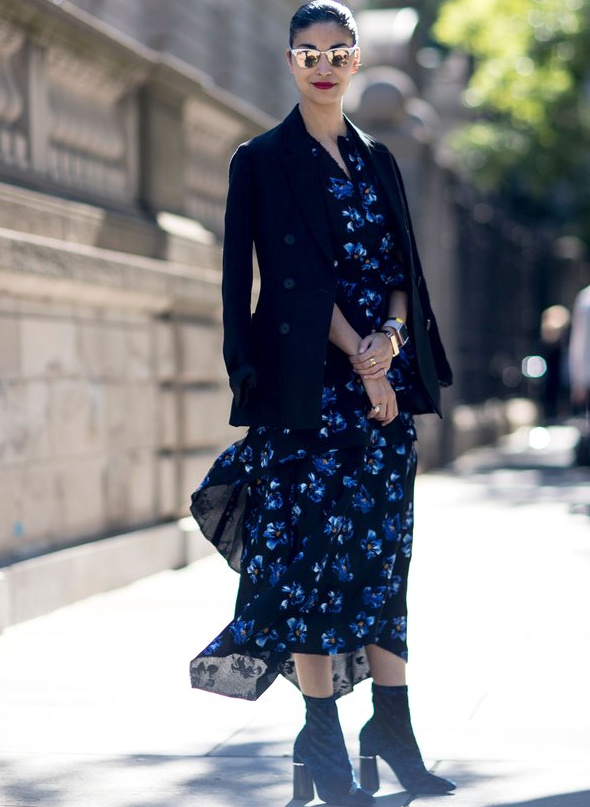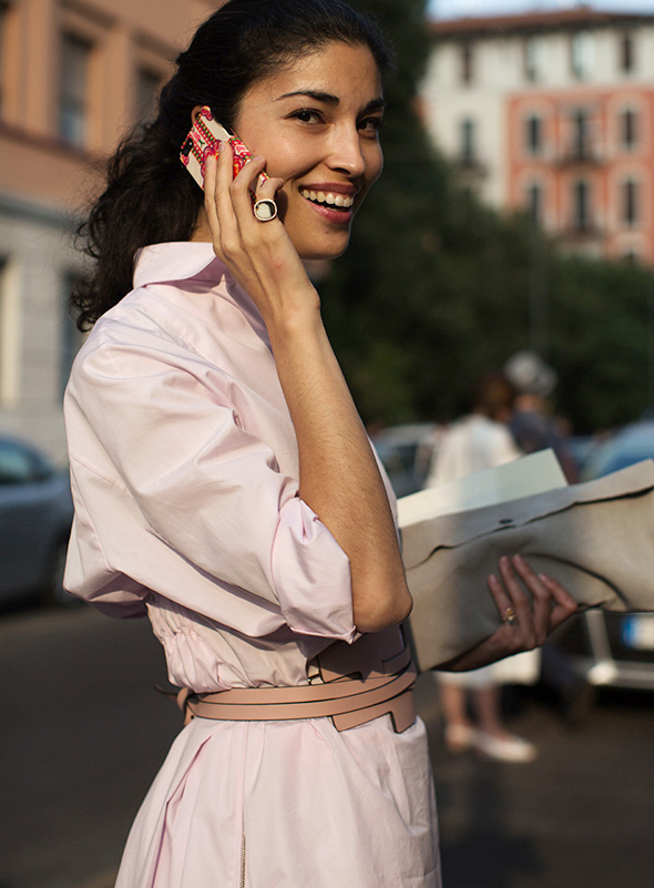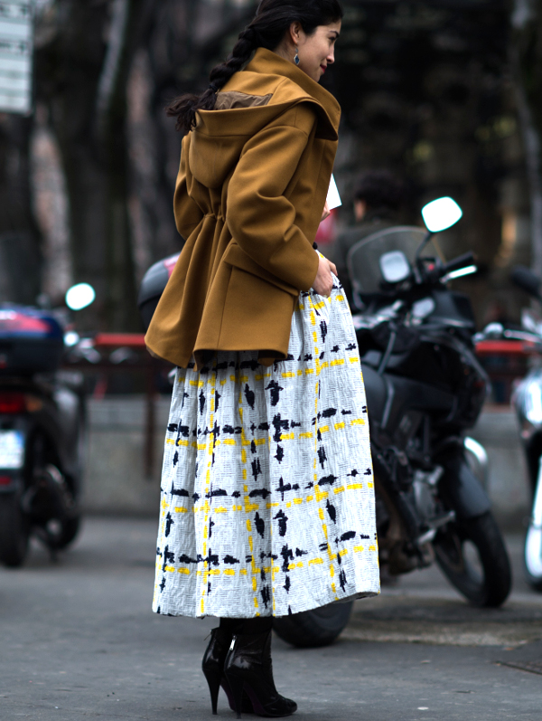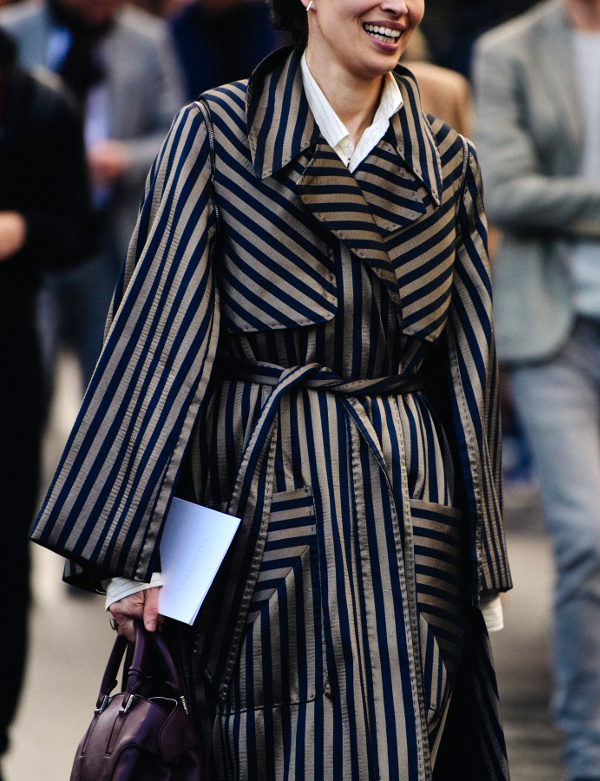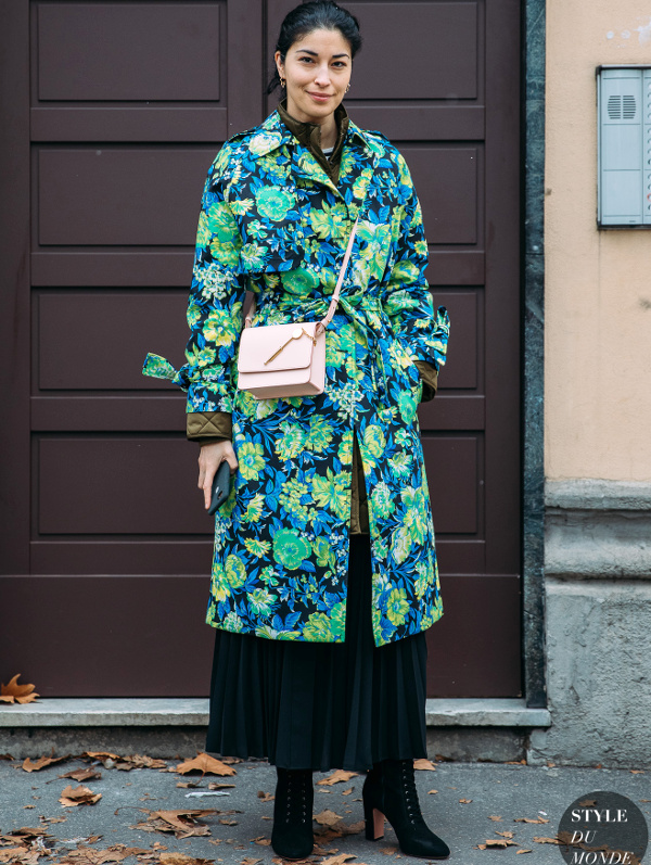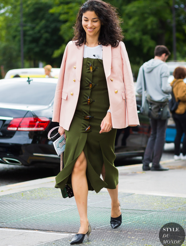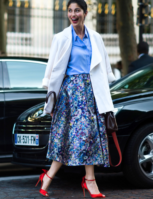 Choisir ses costumes masculins dans une teinte pastel (voir ici et là). Marier kaki et rose pâle (voir ici). Faire la part belle aux trenchs ou manteaux imprimés permettant de sauver n'importe quel look de l'ennui (voir ici, ici, ici, ici et là). Exacerber la féminité de ses amples jupes midi en les portant avec une paire de délicats escarpins (ou sandales) (voir ici). Profiter de l'été pour porter des robes joyeusement girly/folk (voir ici). Dérider ses tenues chics en les réchauffant au creux d'une doudoune de caractère (voir ici et là). Extraire de l'anonymat un look classique en chaussant une paire de bottines imprimées (voir ici). Apposer une pièce monochrome sur une tenue imprimée, permettant ainsi de rendre plus subtile l'ensemble de la tenue (voir ici, ici et là).