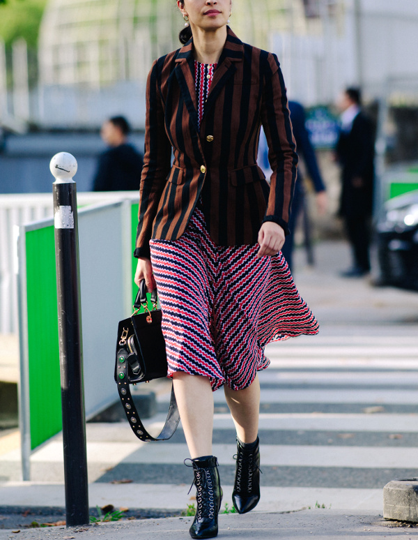 Déjouer la dégaine trop sage d'une robe en soie liquide en la mariant à une paire de baskets blanches (voir ici). Profiter de la nature conventionnelle du noir et blanc pour télescoper les imprimés (voir ici). Se permettre d'associer imprimés, coupes inattendues et matières risquées en misant sur le pouvoir "unificateur" du camaïeu de teintes (voir ici, ici et là). Marier marron et saumon (voir ici). "Upgrader" le style d'un simple blouson en jean en le réchauffant au creux d'un manteau épuré aux carreaux masculins (voir ici). Tempérer une pièce aux broderies traditionnelles en la télescopant à un petit blouson en cuir (voir ici). Casualiser ses longues robes estivales en les portant avec un tee-shirt blanc (voir ici). Pimenter une tenue monochrome en la ceinturant taille haute (voir ici et là). Porter avec assurance et élégance des mix and match d'imprimés inattendus (voir ici, ici, ici et là).