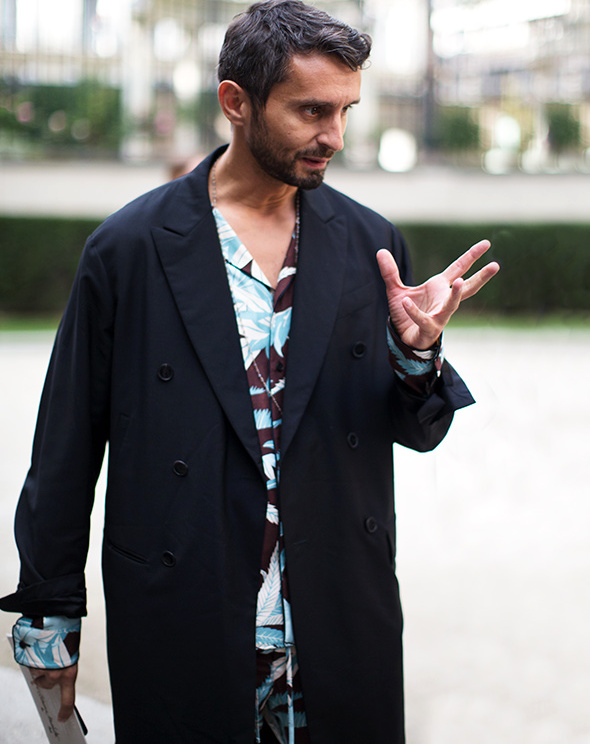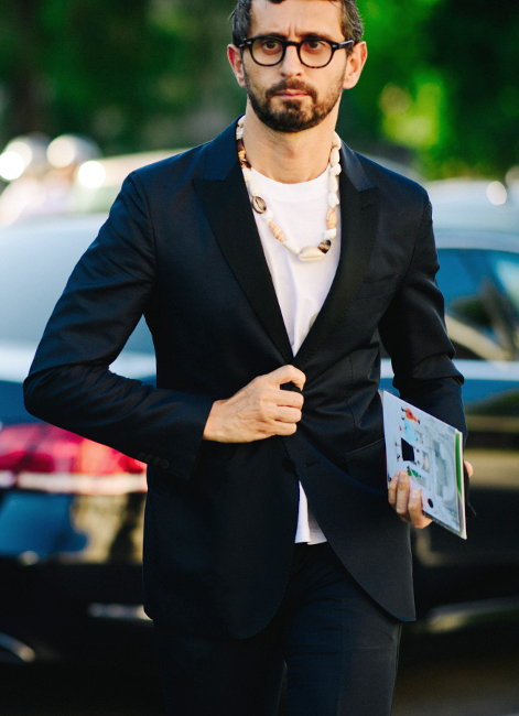 En charge de la section Mode du journal La Repubblica, le Milanais Simone Marchetti est reconnu pour ses analyses pertinentes, son regard perspicace sur le fashion system, mais aussi pour son sens du style. Fruit d'un savant mélange entre imprimés all-over, nonchalance étudiée, coupes classiques et détails funky, ce dernier fascine en effet les photographes street-style depuis de nombreuses saisons. Essayons dès lors de savoir ce que nous - tant les femmes que les hommes - pourrions emprunter à sa grammaire stylistique afin d'égayer la nôtre...