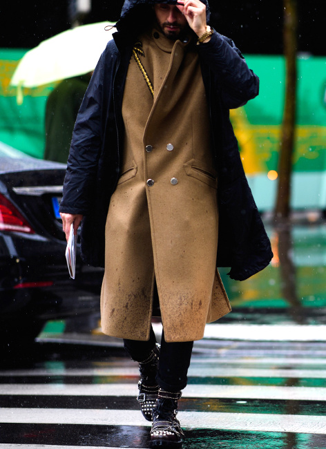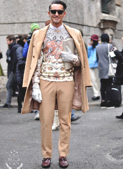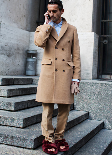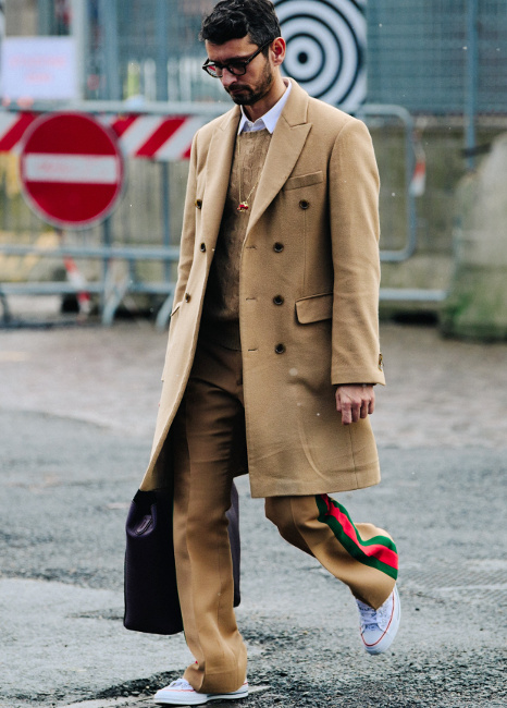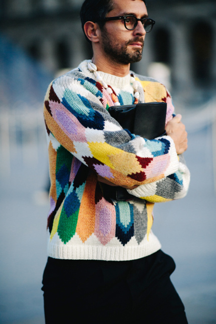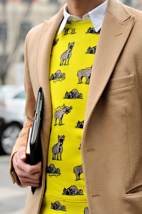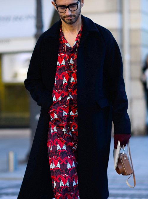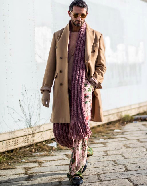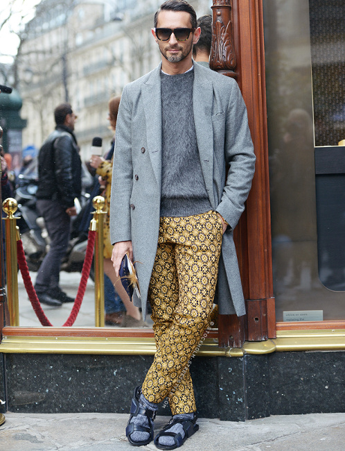 Beaucoup d'idées à puiser pour les femmes je trouve! Moi qui aime bien les pantalons imprimés et les pardessus bien coupés, je lui piquerais bien quelques unes de ses tenues. Je lui laisse sans regret les claquettes chaussettes par contre.
