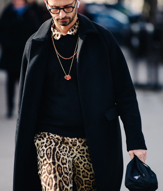 Urbaniser un ensemble pyjama d'extérieur au contact d'un sobre trench bleu marine ou d'un sombre pardessus (voir ici et là). Apaiser l'imprimé léopard en le mariant à diverses pièces classiques réglisse ou camel (voir ici et là). Réhausser un total look bleu marine sobrement casual-chic via un collier exotique (voir ici). Oser le foulard rose pour réhausser le duo bronze/vert mousse (voir ici). Déjouer le style sportswear du sweat shirt en y glissant une blouse à lavallière (voir ici). Dérider son smoking à coup de tee-shirt blanc et de collier de coquillages (voir ici). Penser à choisir certains de ses pantalons larges à pinces agrémentés de bandes latérales colorées, de manière à pouvoir twister subtilement une silhouette classique (voir ici).
